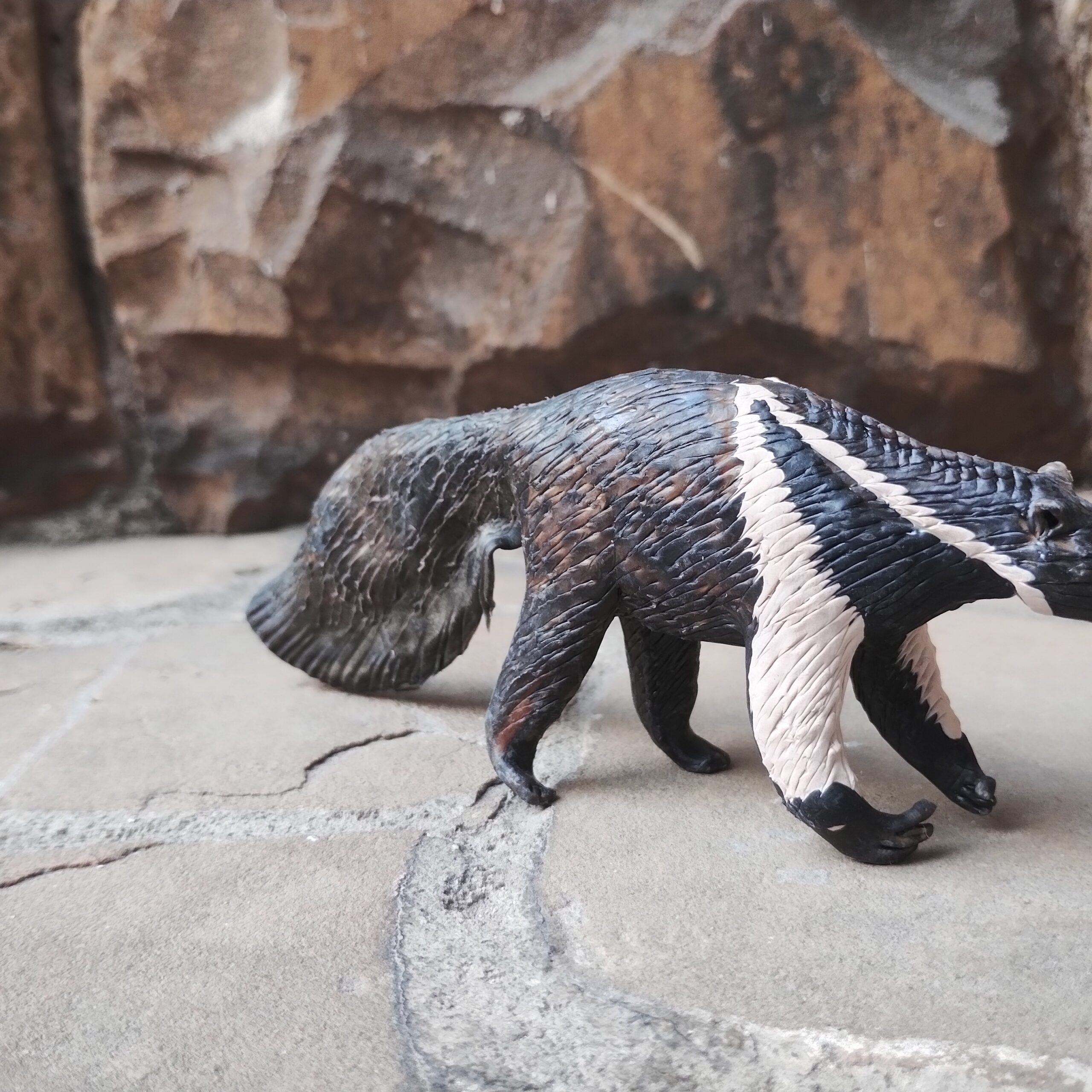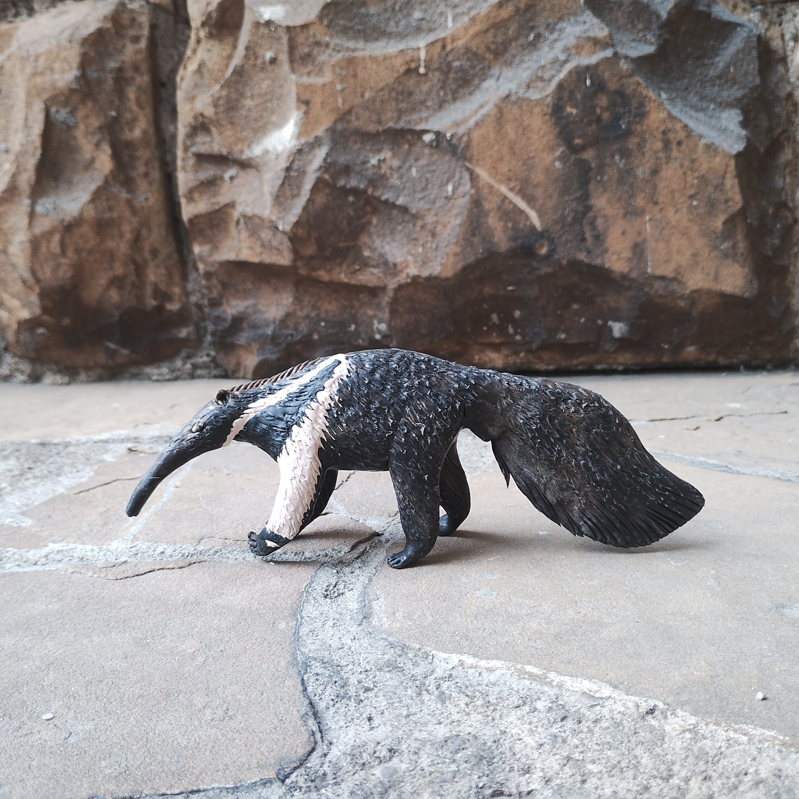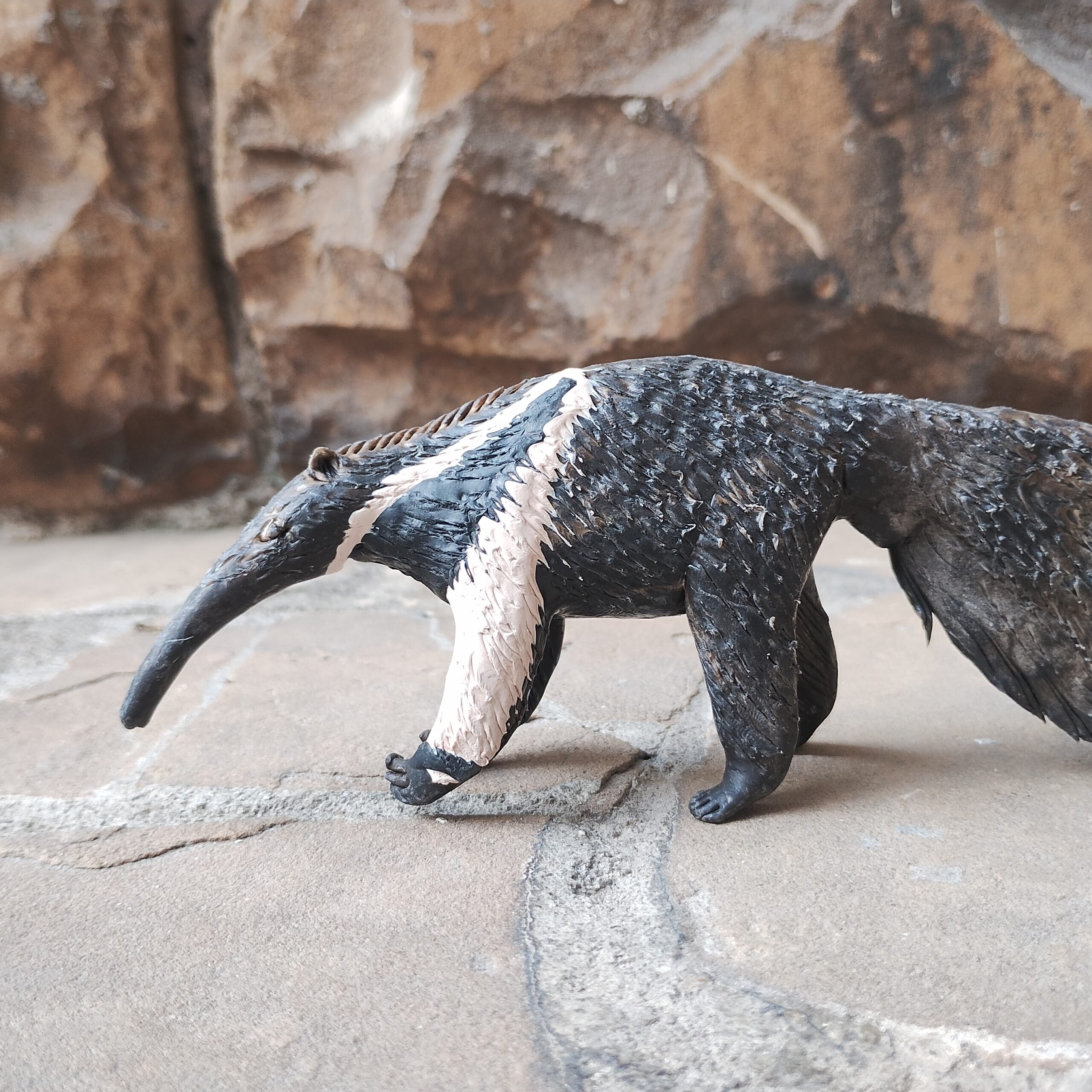 Escultura de bicho moldada à mão a partir da balata, resina da árvore balateira, pelo Povo Macuxi. Os Macuxis realizam a extração da balata para criar esculturas diversas, como animais da fauna brasileira.