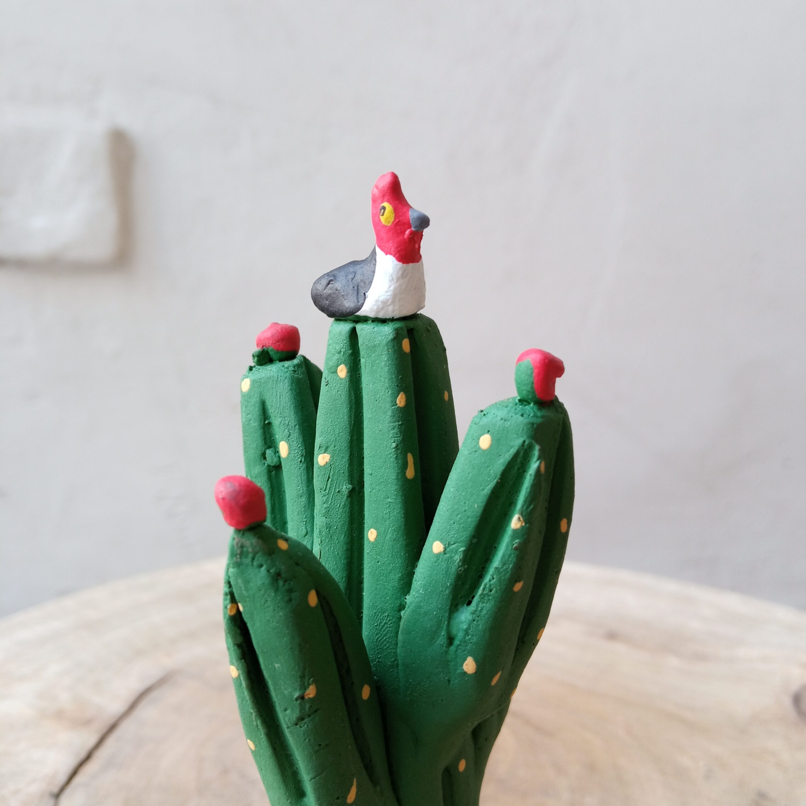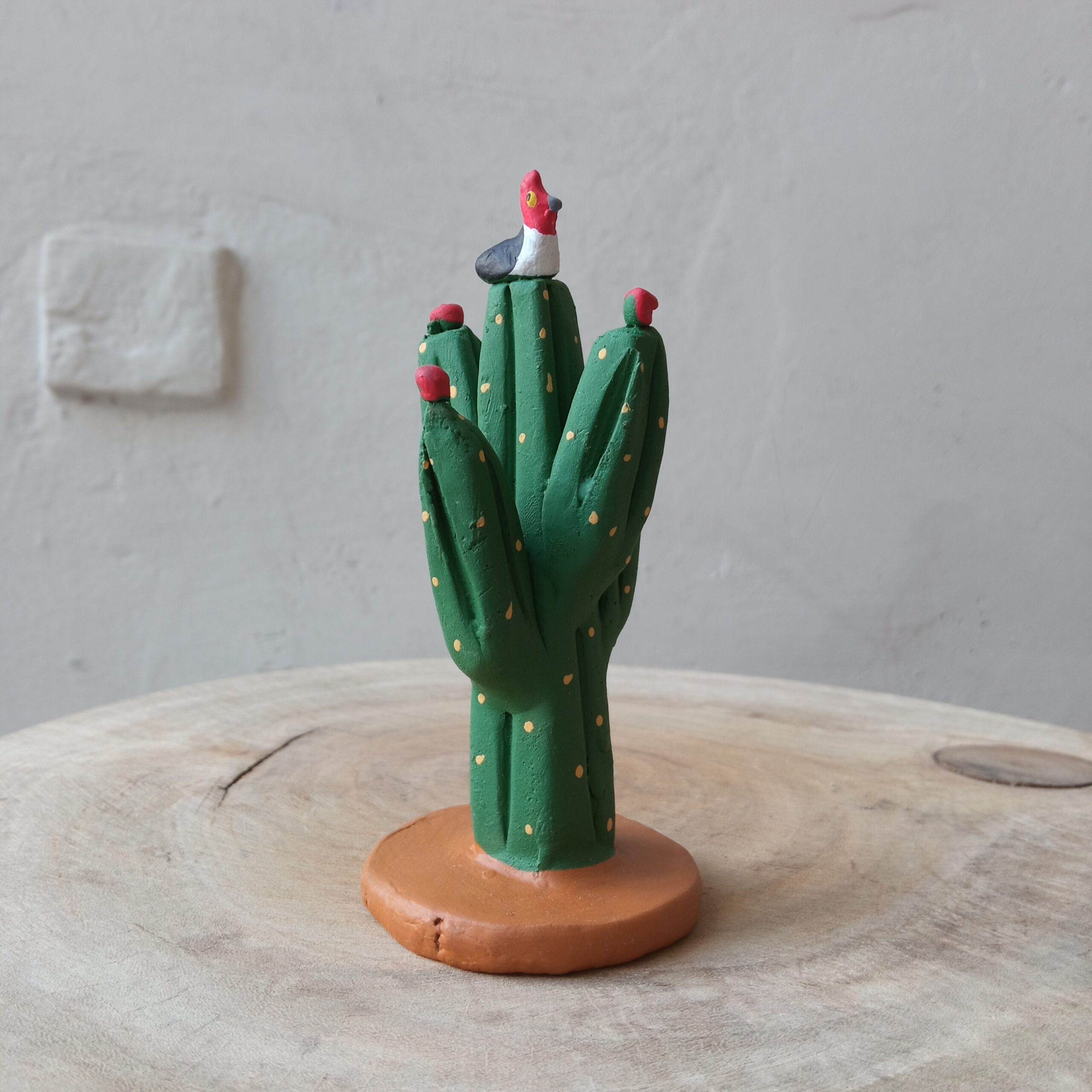 Escultura Cacto em cerâmica, moldada e pintada à mão, Caruaru – PE.