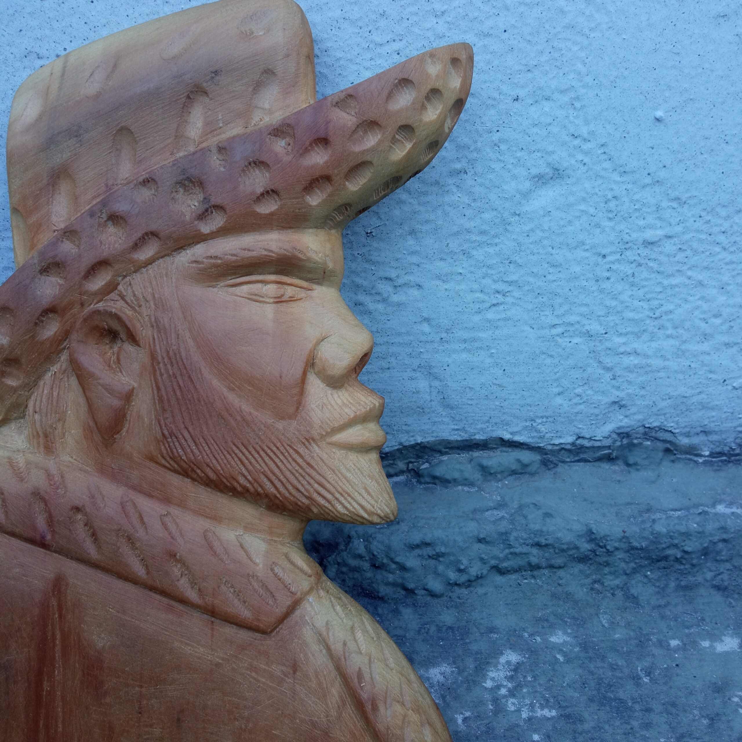 Busto entalhado em madeira de demolição, feito pelas mãos de Seu Zé.