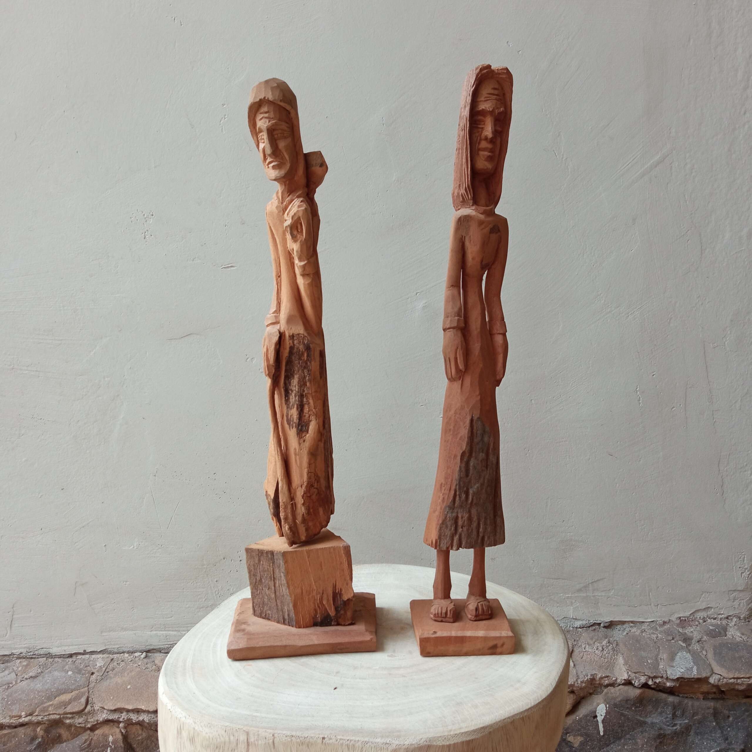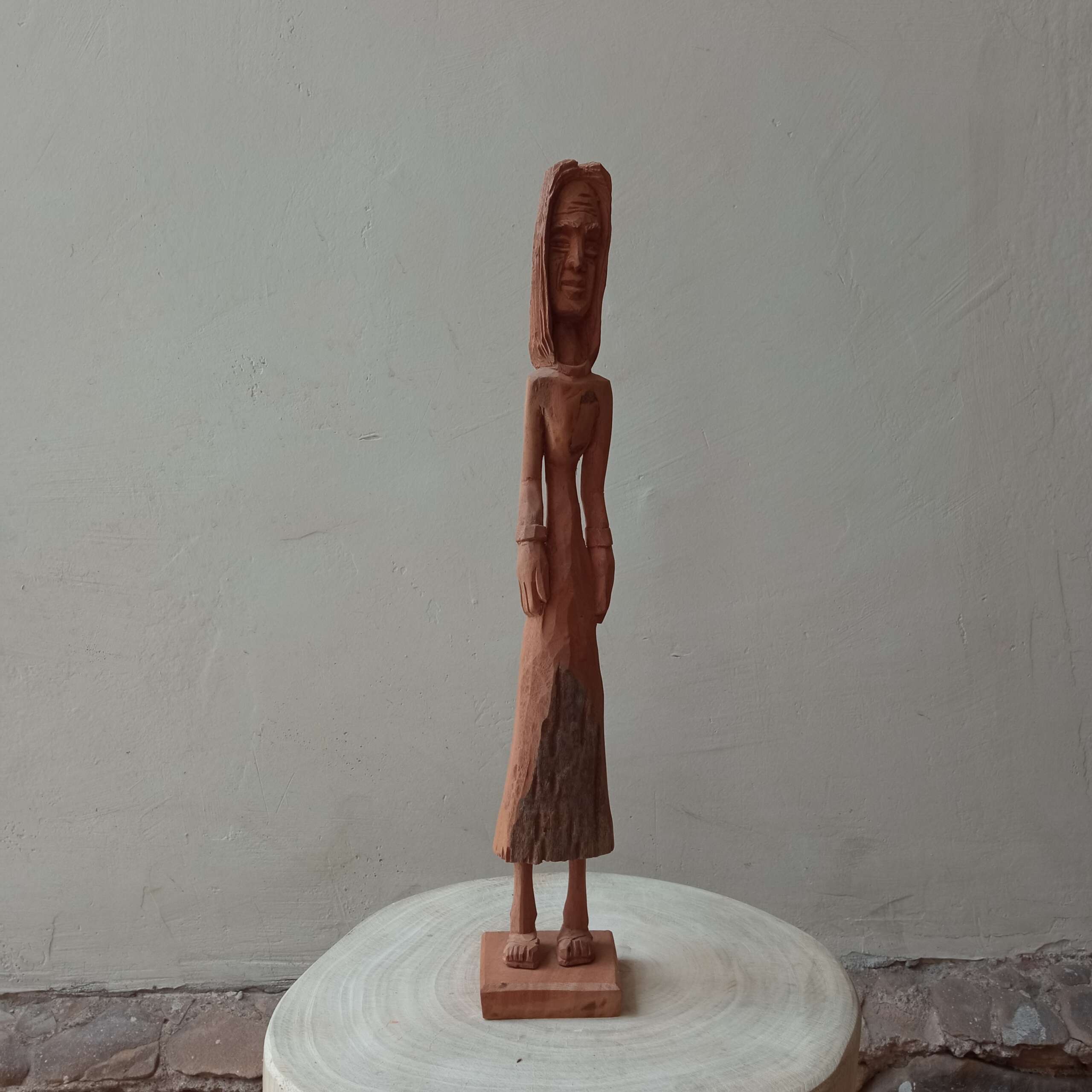 Linda escultura de uma mulher, produzida em umburana, cheia de detalhes, feita pelas mãos do artista Braza. Alto do Rodrigues-RN.
