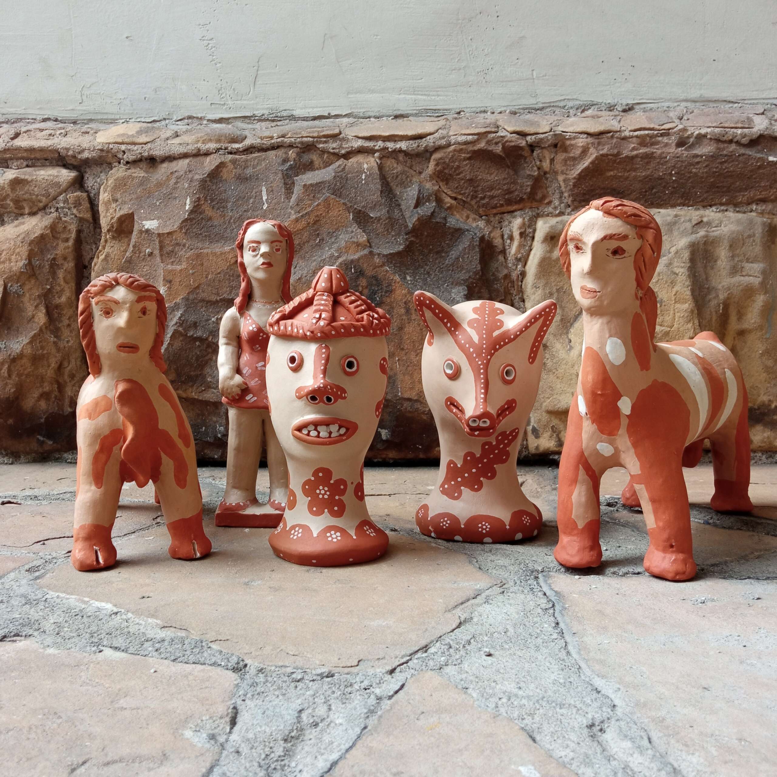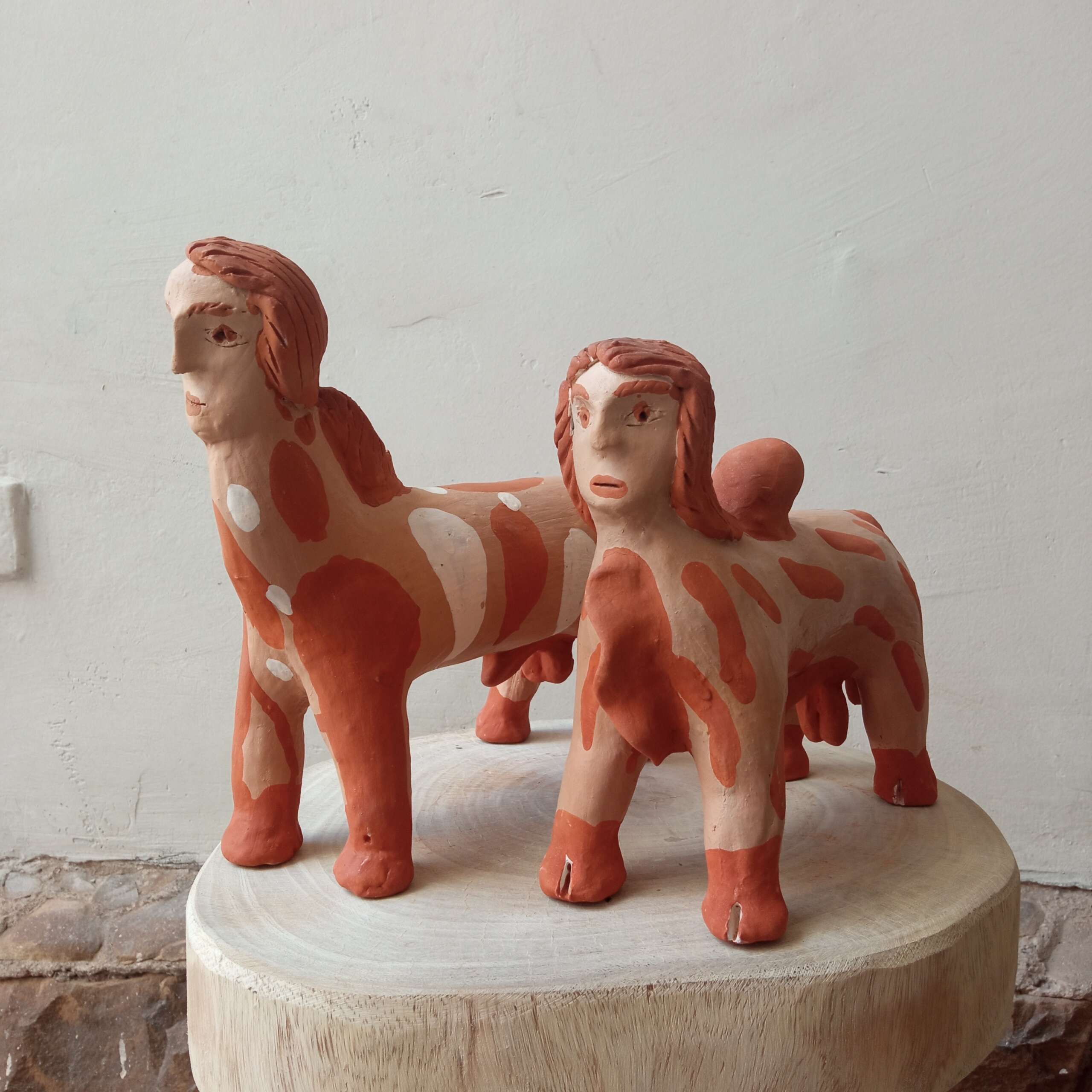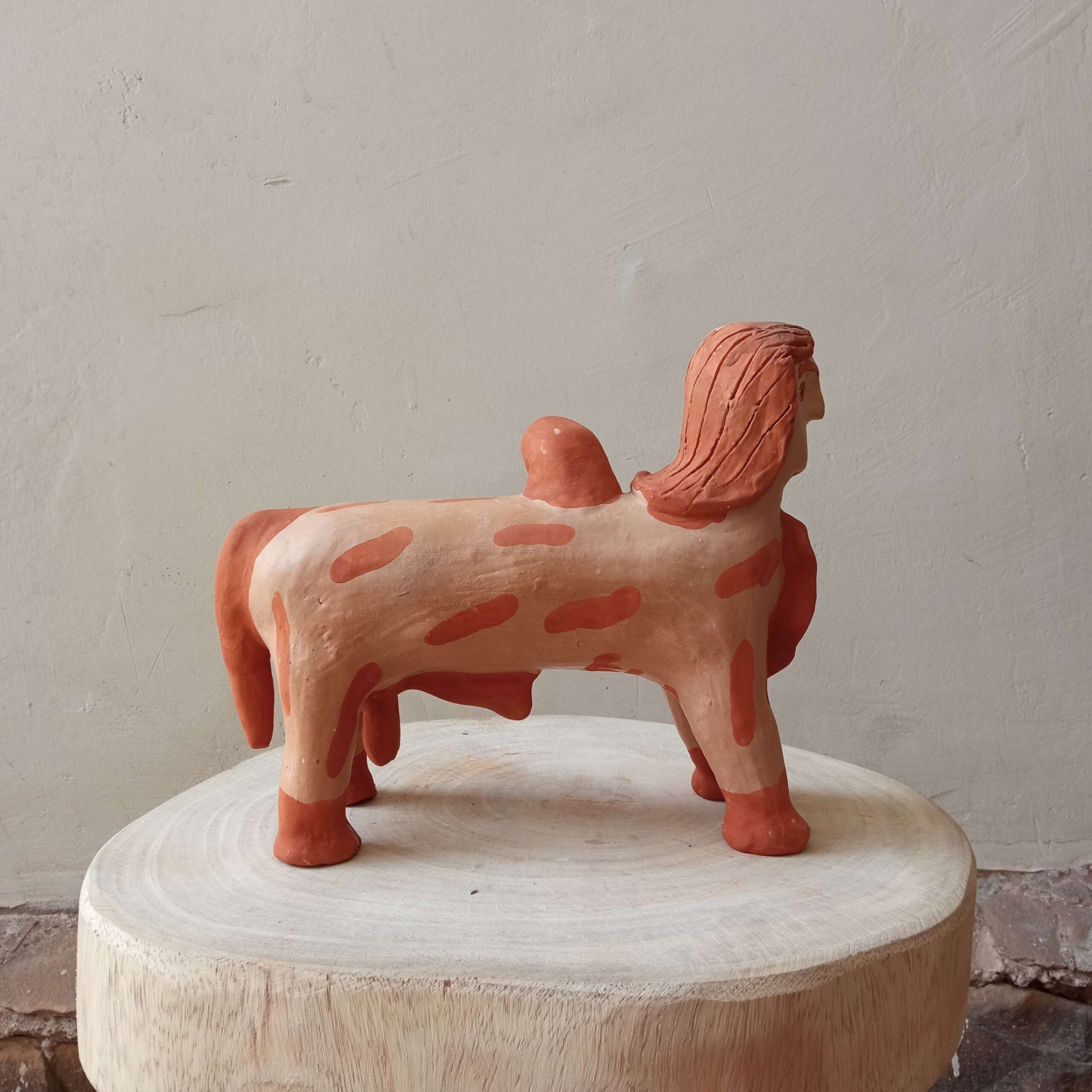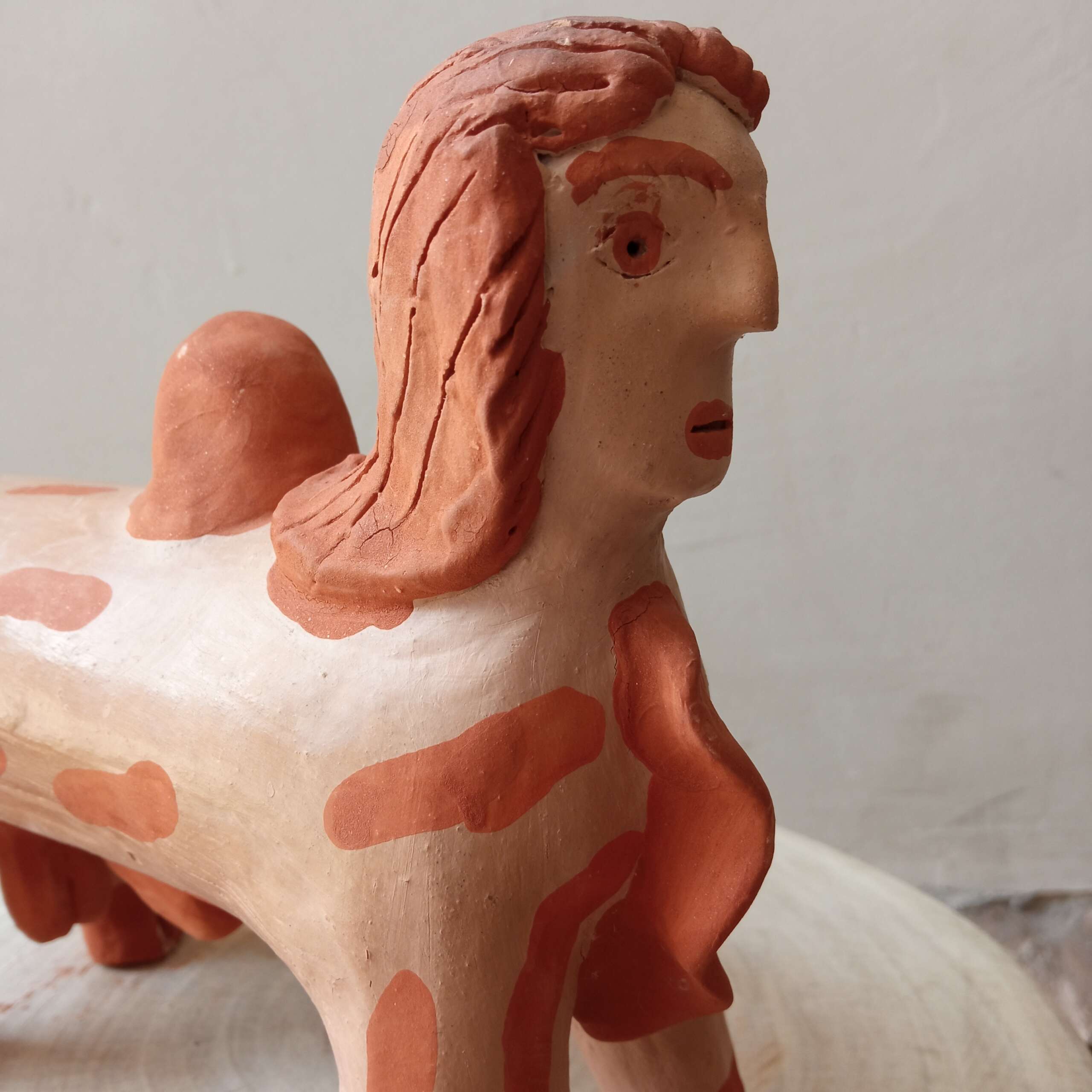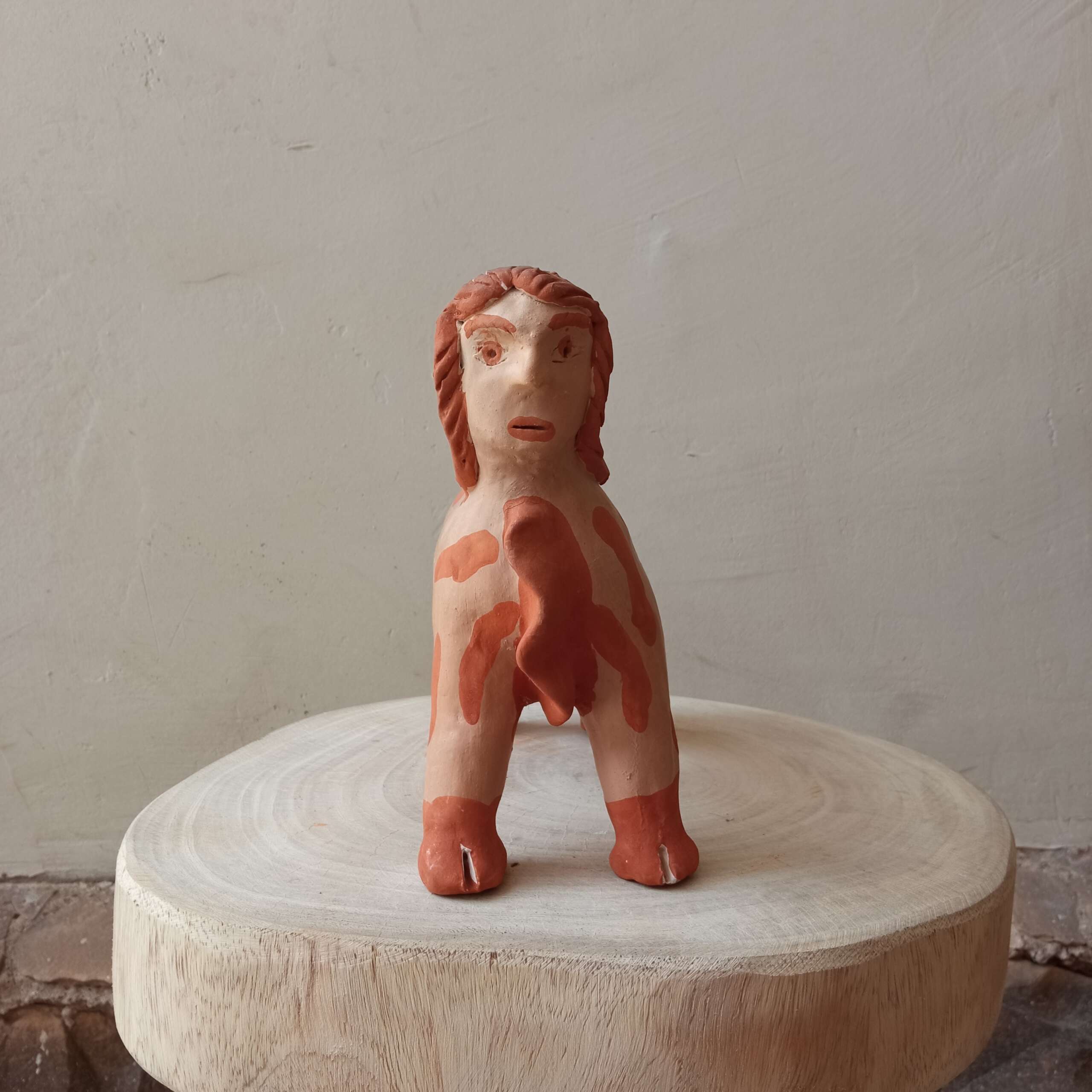 Escultura de bicho com cabeça de gente da artista Elza. Figura comum na obra dela e de outros artistas dessa “escola” em Caraí.