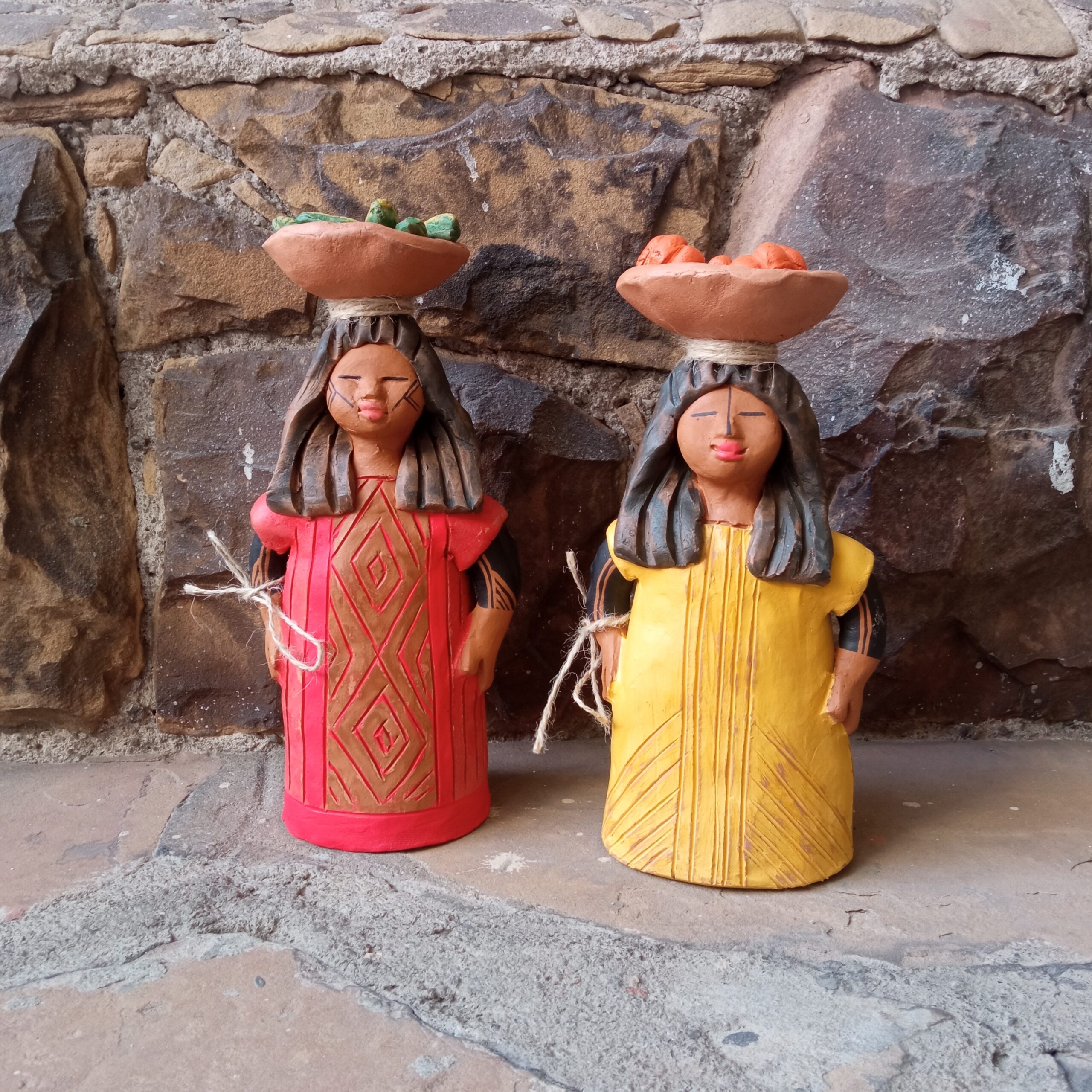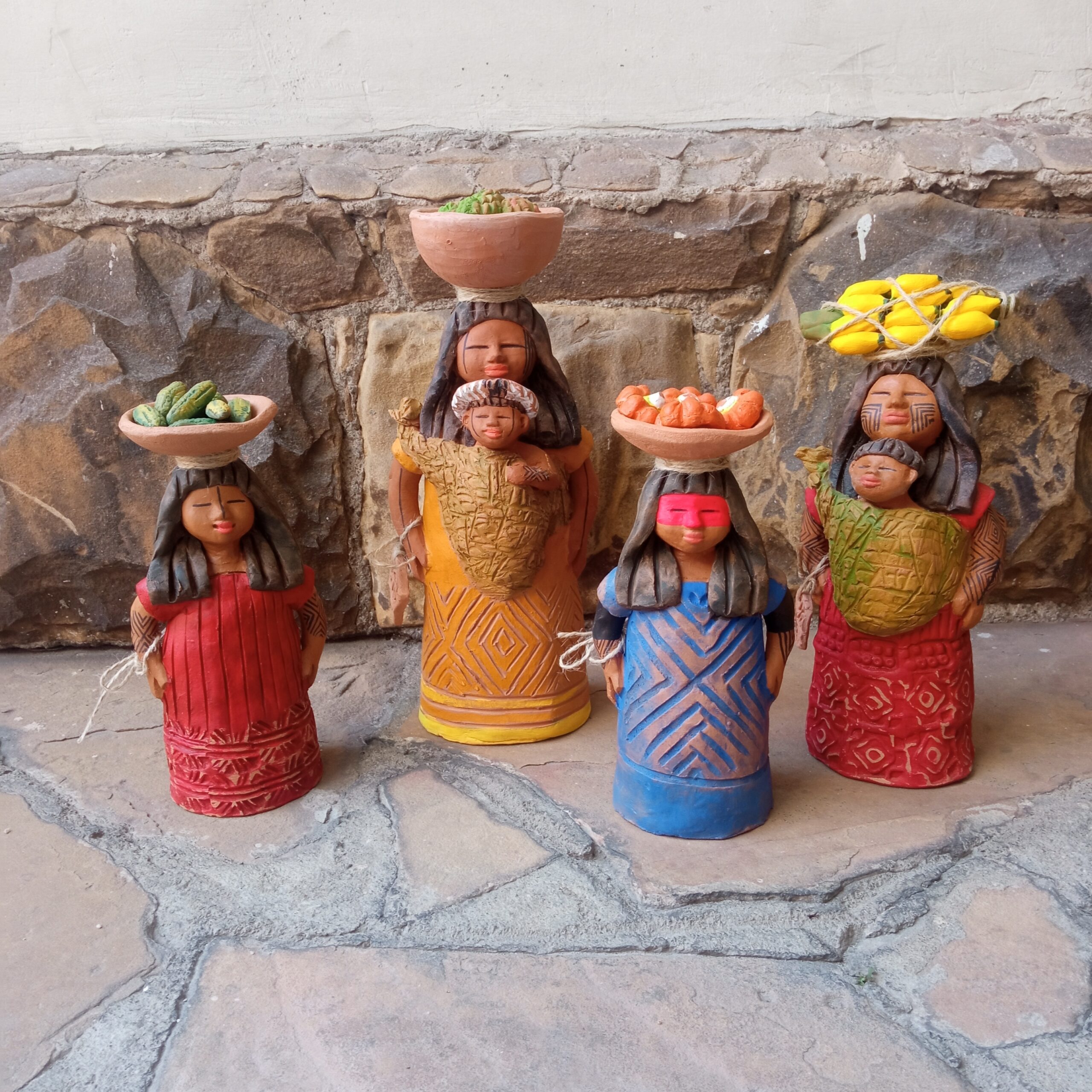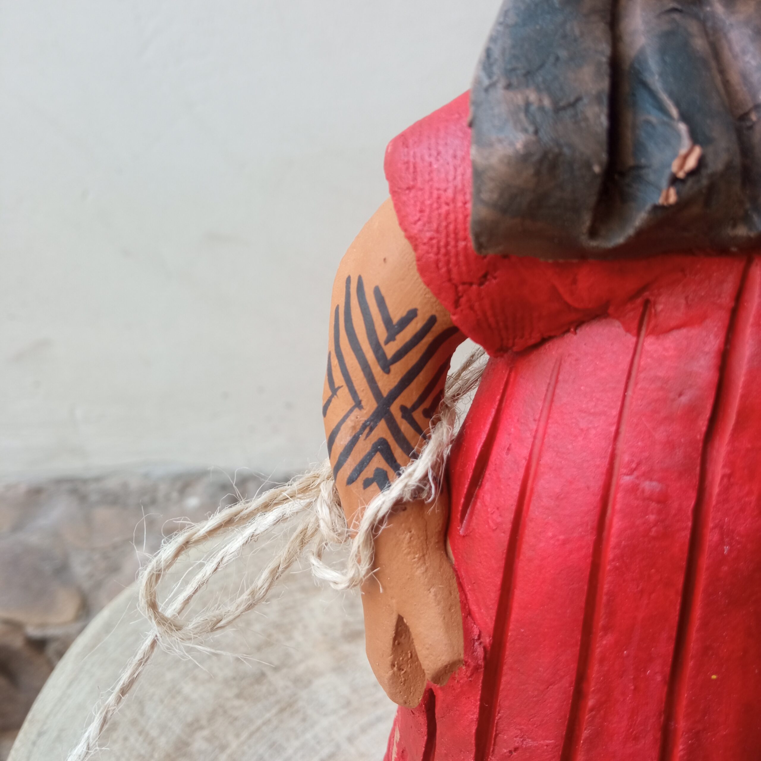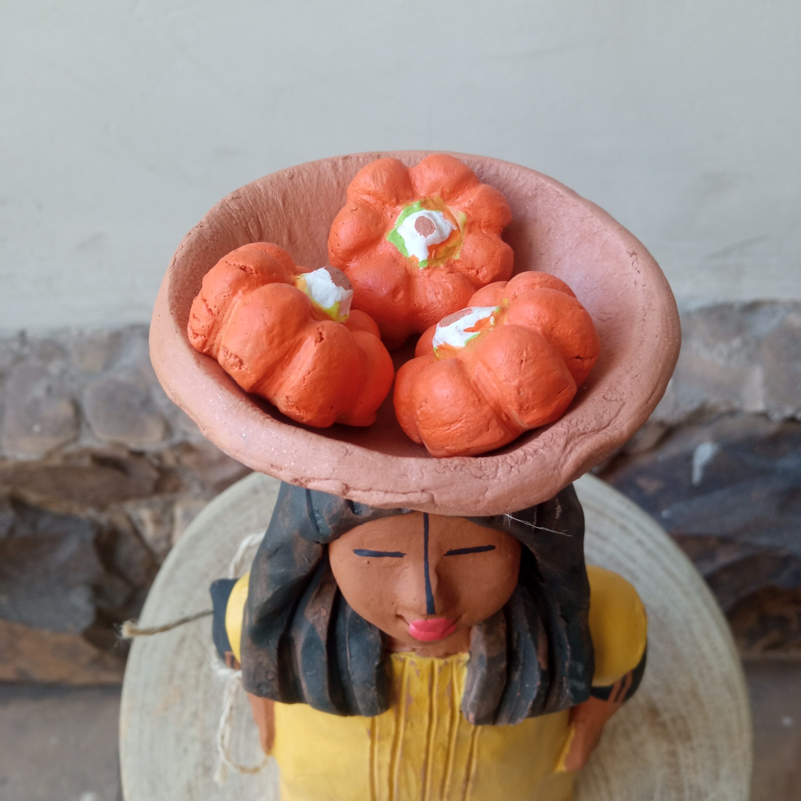 Escultura de cerâmica representando uma mulher indígena, inspirada nos terenas. Artista Indiana Marques.