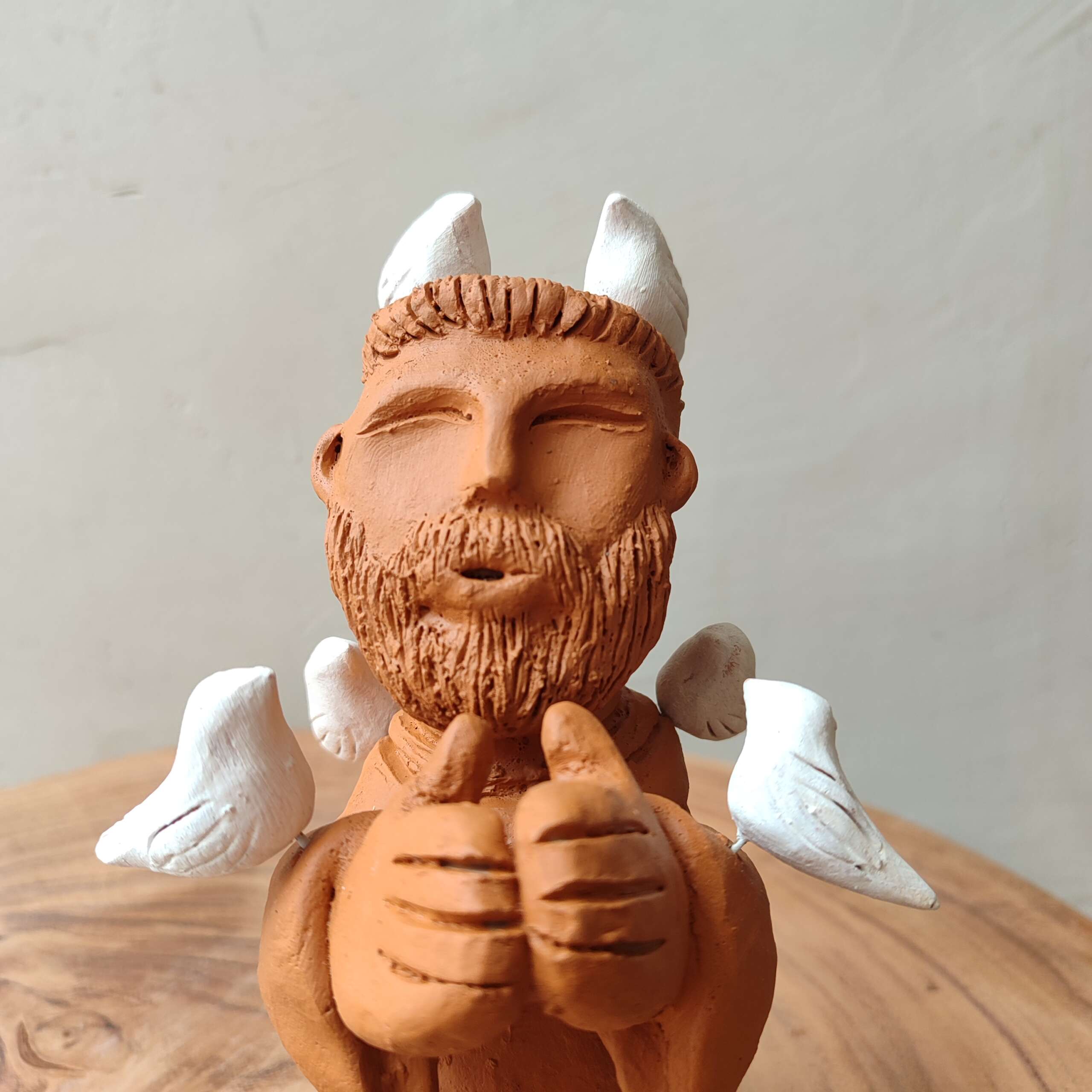 Escultura de São Francisco produzido em barro com pombinhas brancas. Maragogipinho – BA.