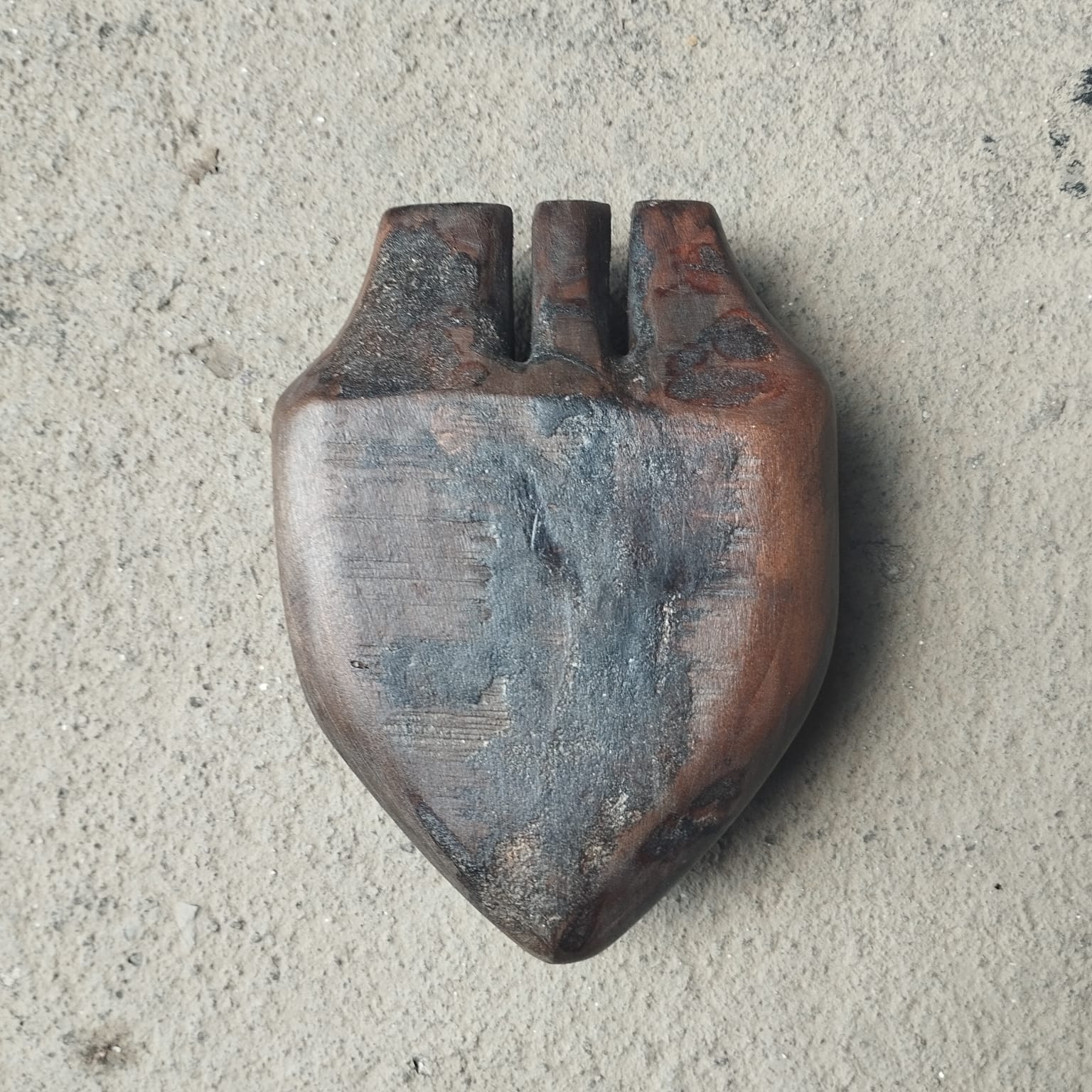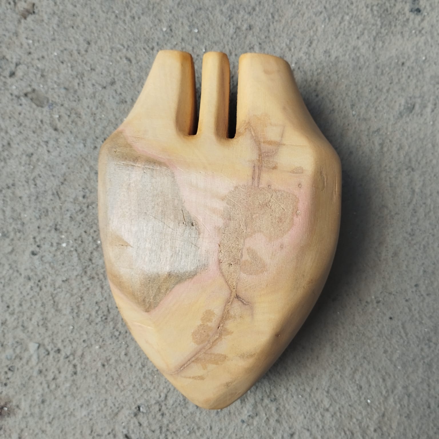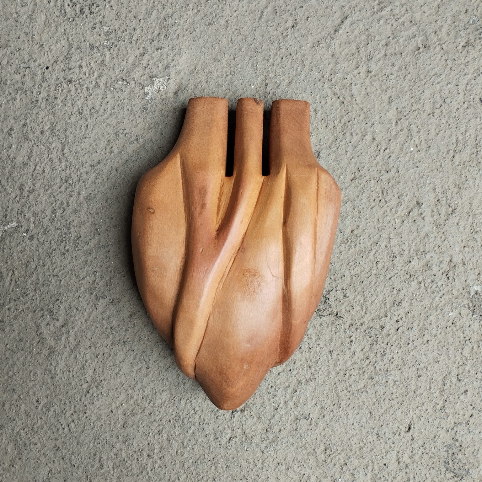 Ex-voto em forma de coração confeccionado em madeira umburana.