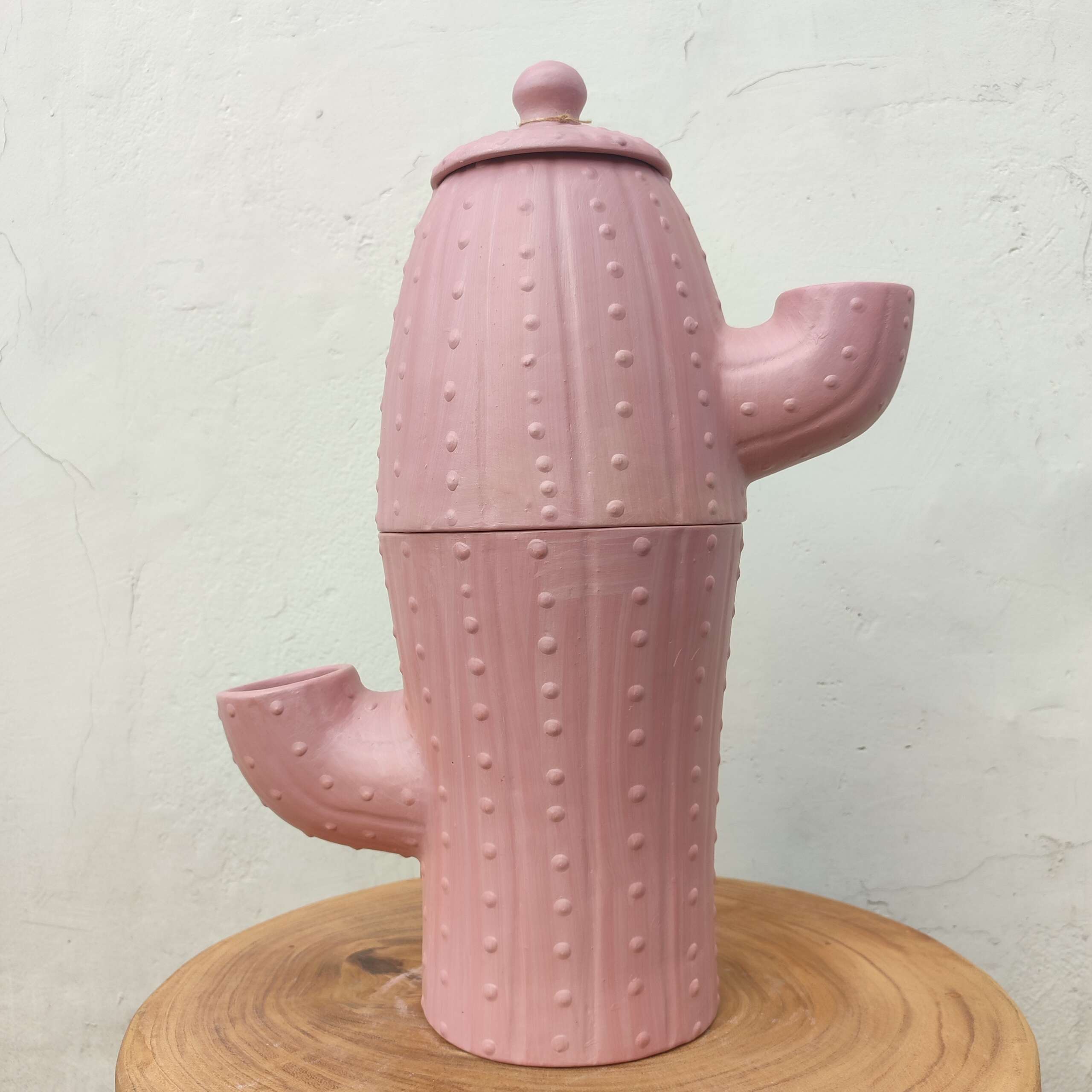 Filtro de barro em forma de cacto, com pintura do próprio barro, cores da natureza. Confeccionada por artesãs do Vale do Jequitinhonha – MG.