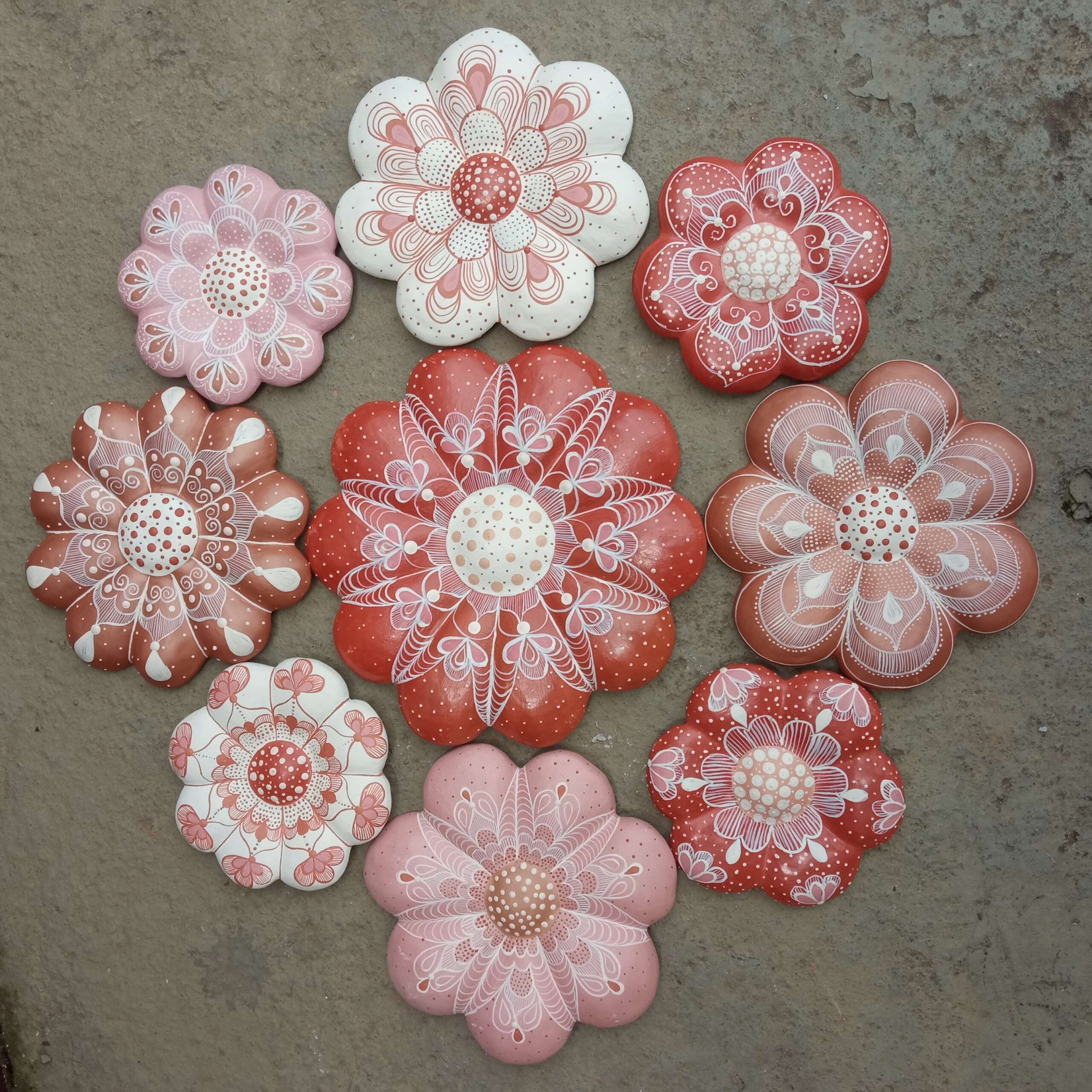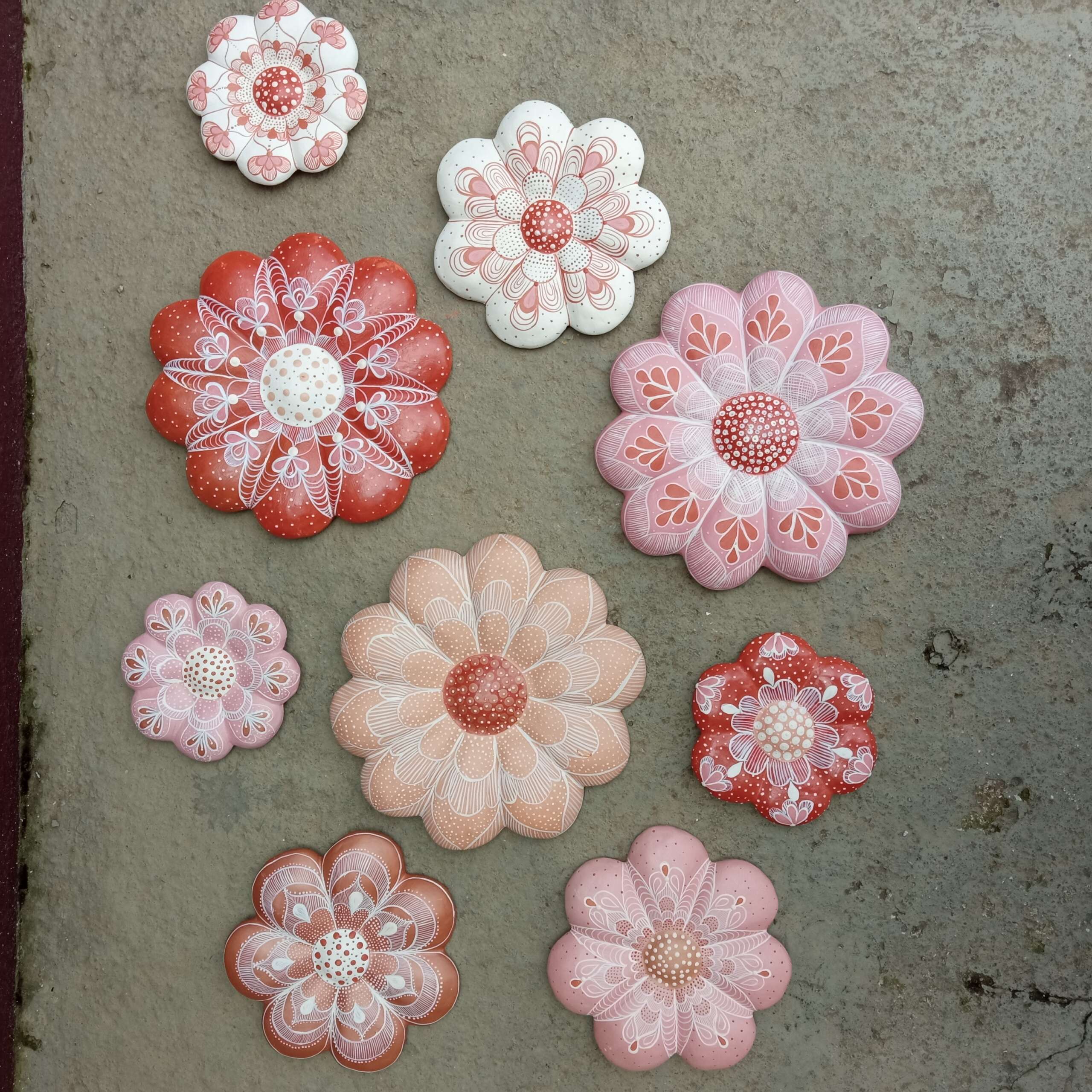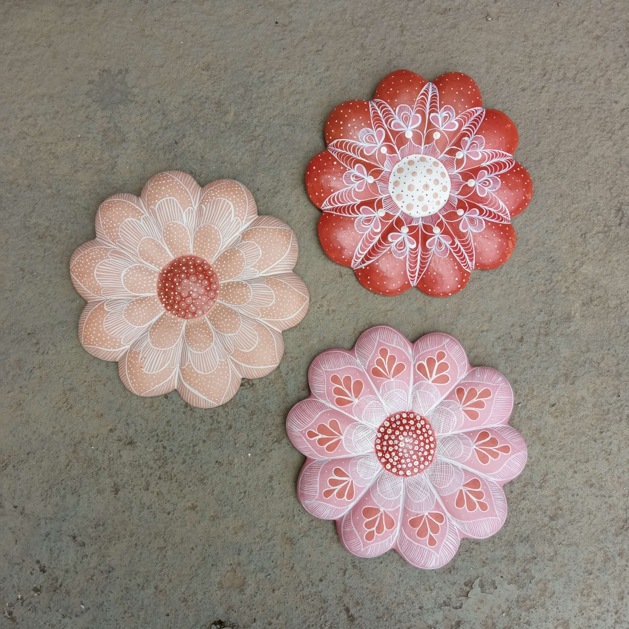 Flor de barro, decorativa para parede, com pintura do próprio barro com misturas de plantas e raízes, cores da natureza. Confeccionadas por artesãs do Vale do Jequitinhonha – MG.