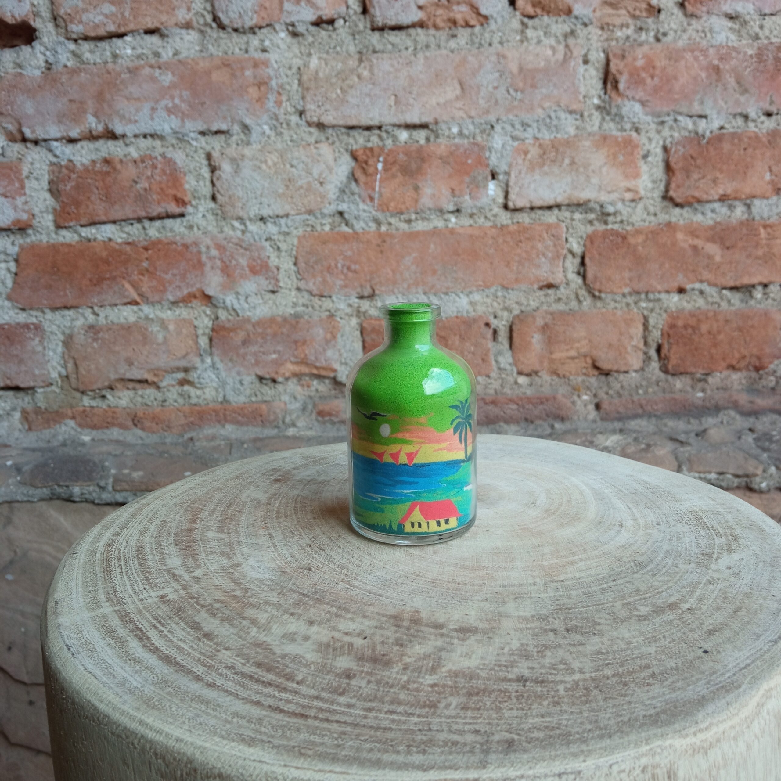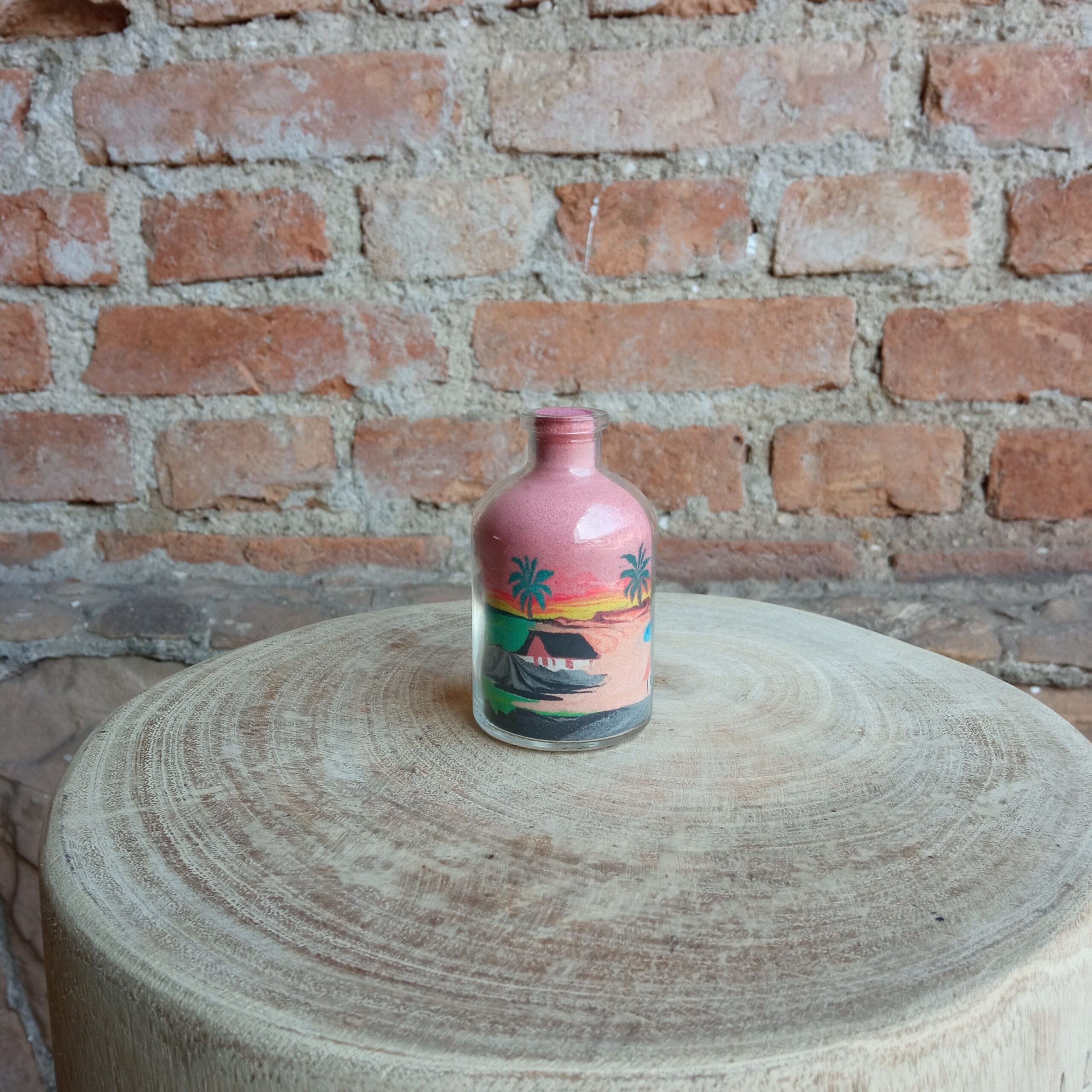 Tradicional garrafa adornada com areia compondo cenas de praias nordestinas