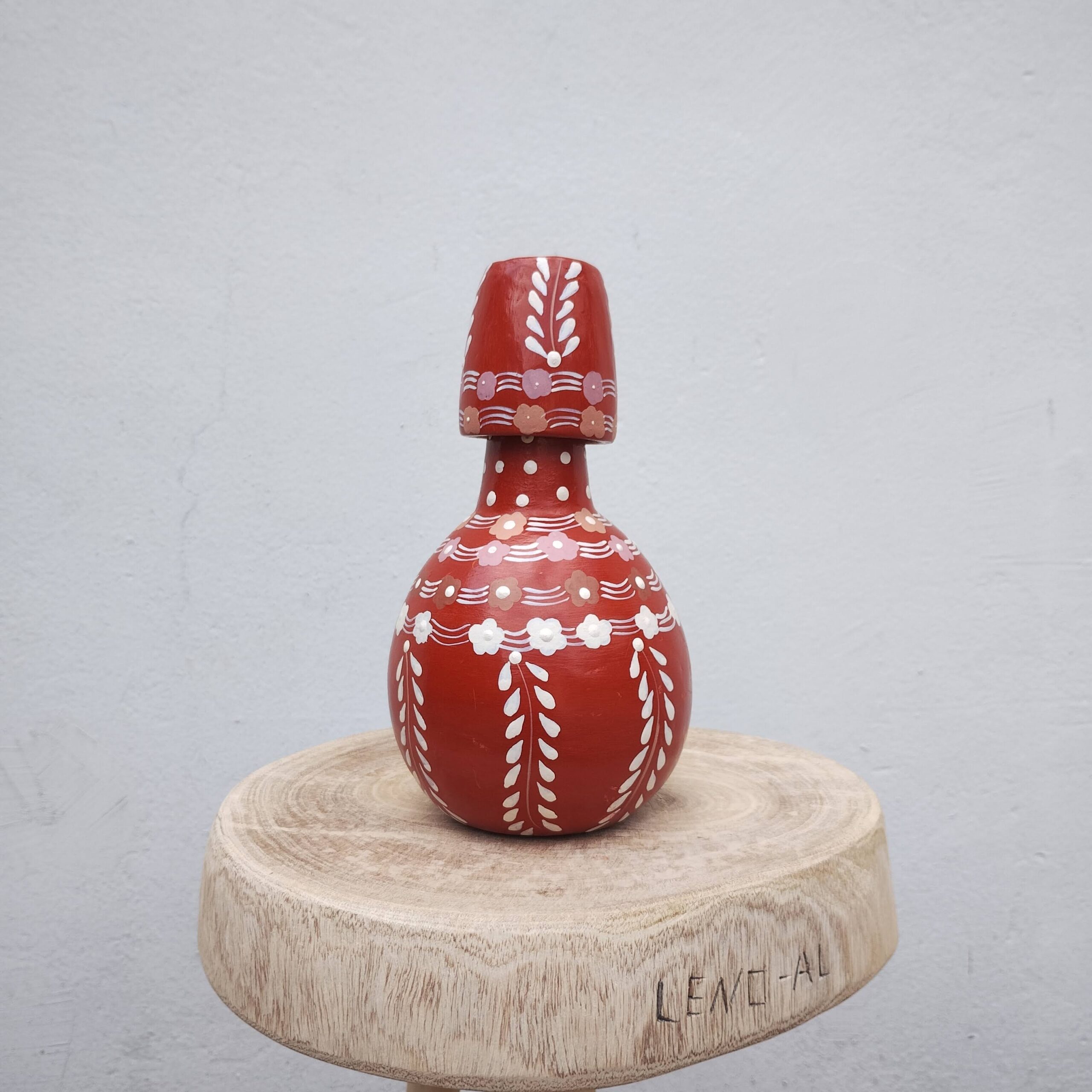 Moringa de cerâmica com tampa e copo, com pintura do próprio barro, cores da natureza. Confeccionada por artesãs do Vale do Jequitinhonha.