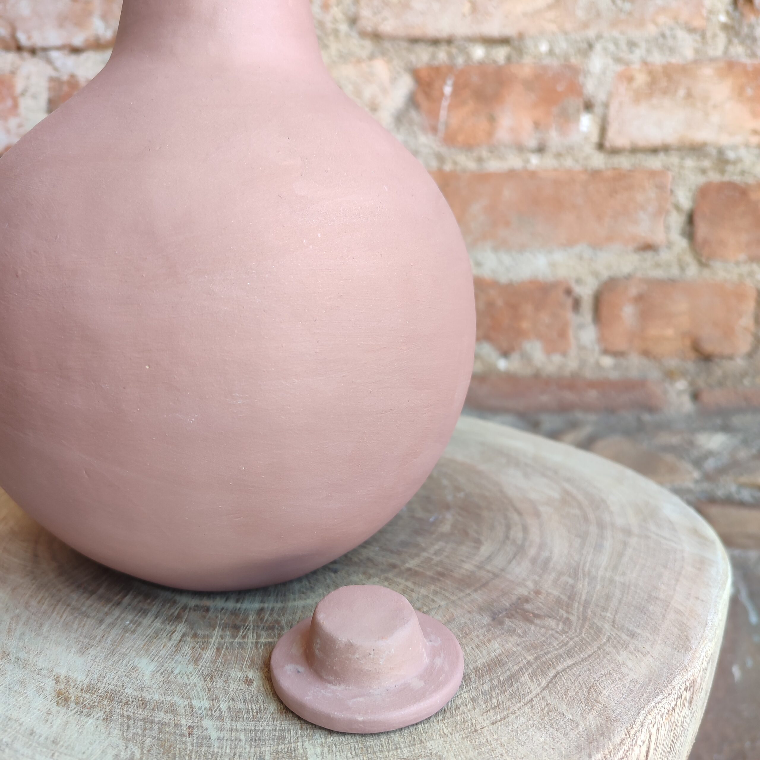Moringa de cerâmica com tampa, com pintura do próprio barro, cores da natureza. Peça única. Confeccionada por artesãs do Vale do Jequitinhonha – MG. Para uso, descartar a primeira água, depois utilizar normalmente.