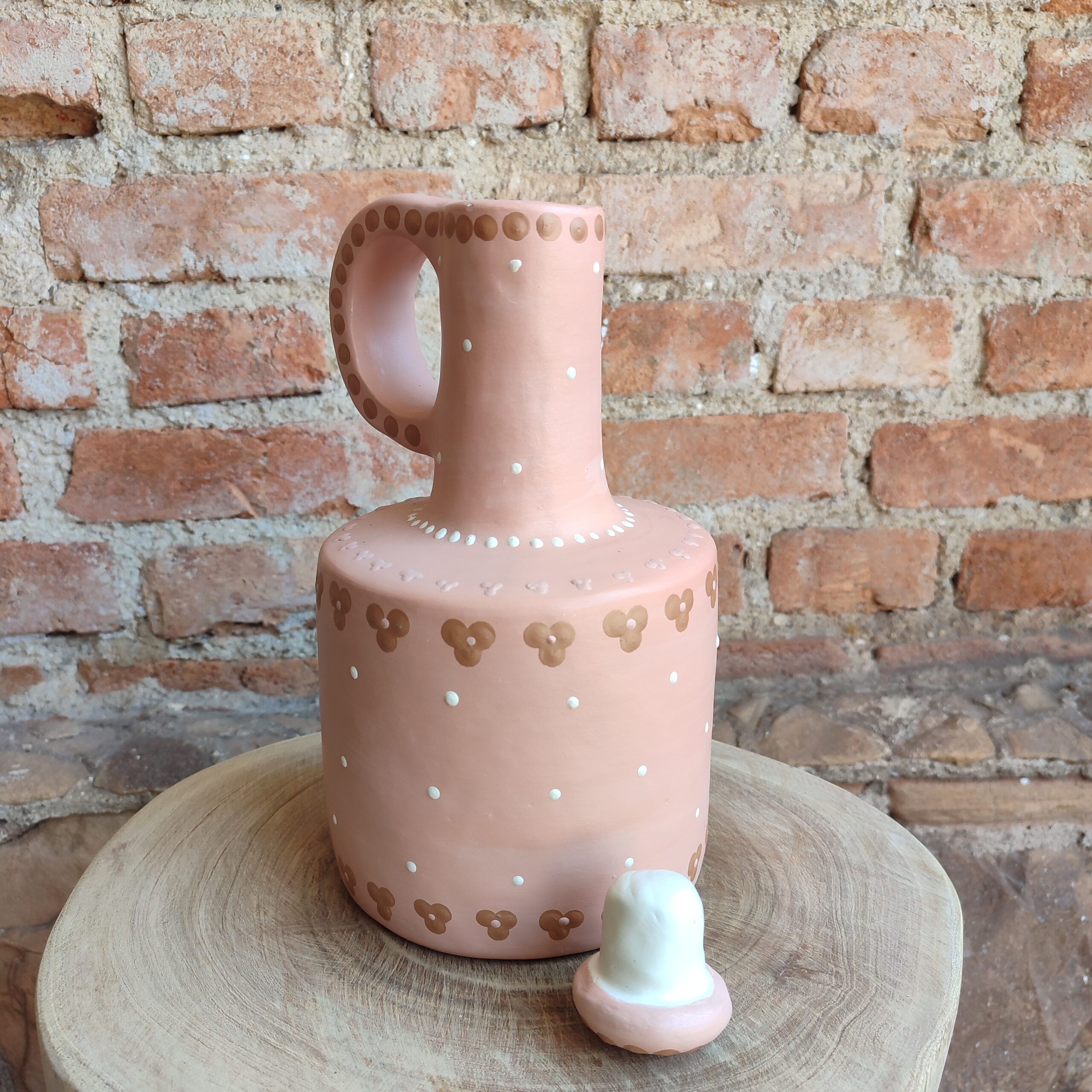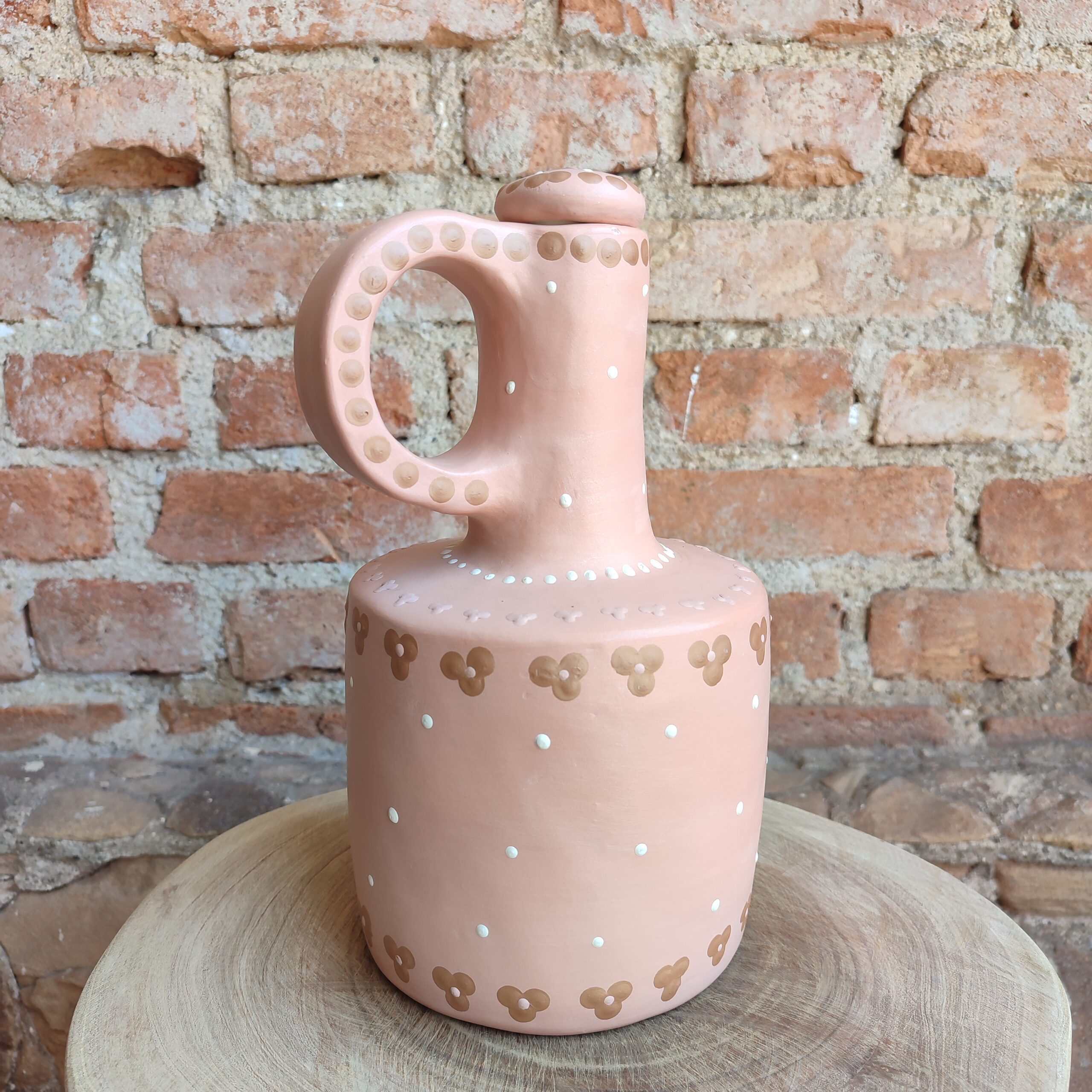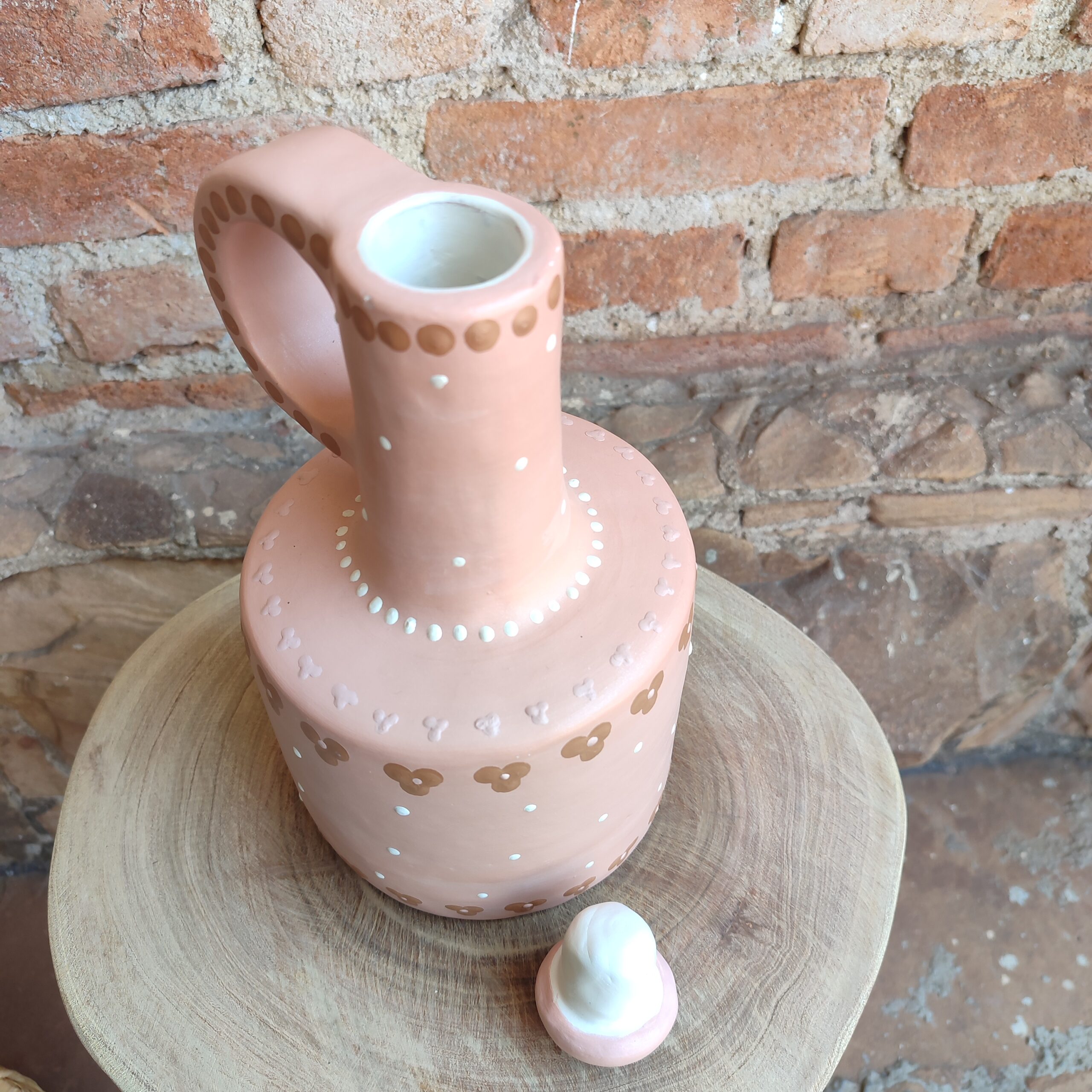 Moringa de cerâmica, com pintura do próprio barro, cores da natureza. Confeccionada por artesãs do Vale do Jequitinhonha – MG.