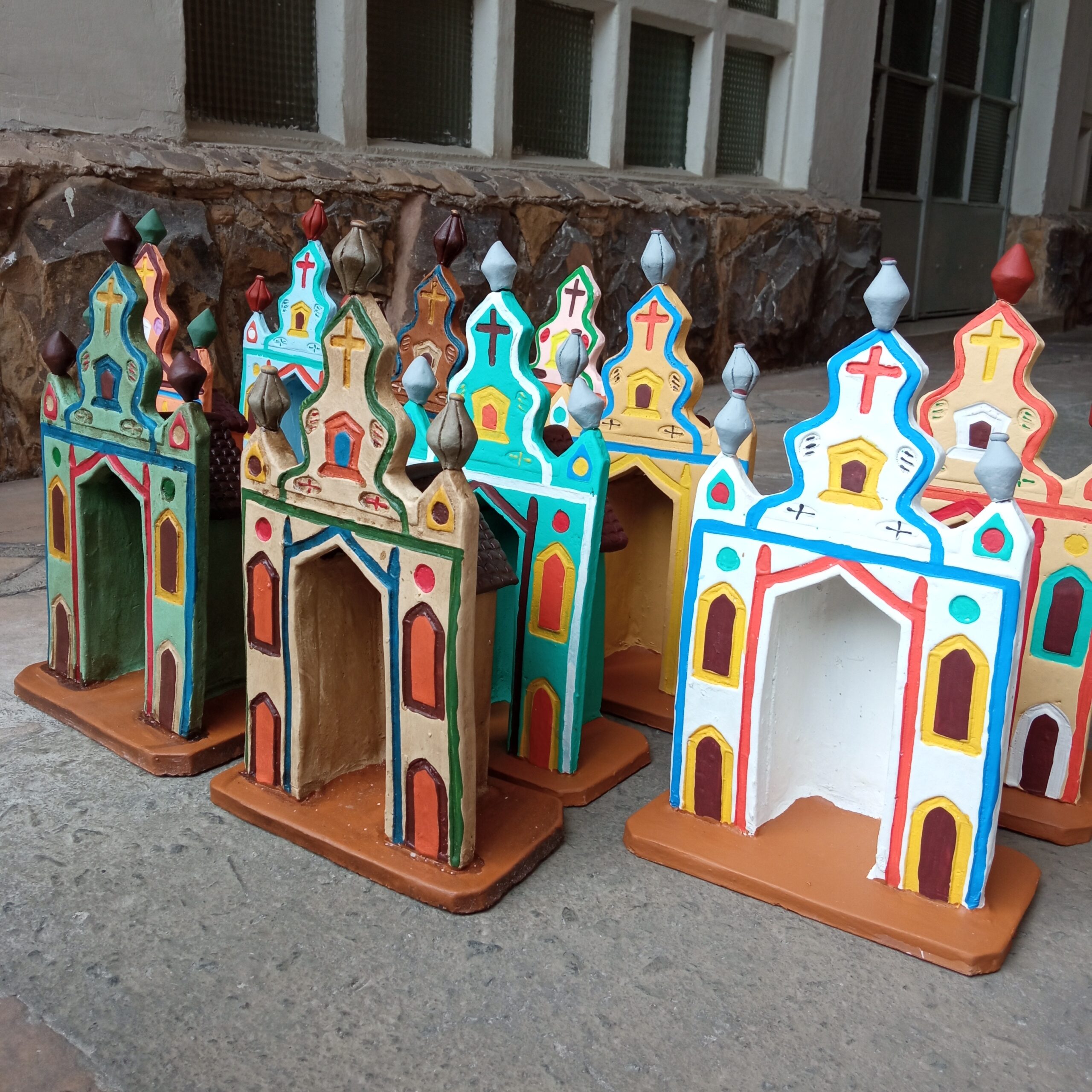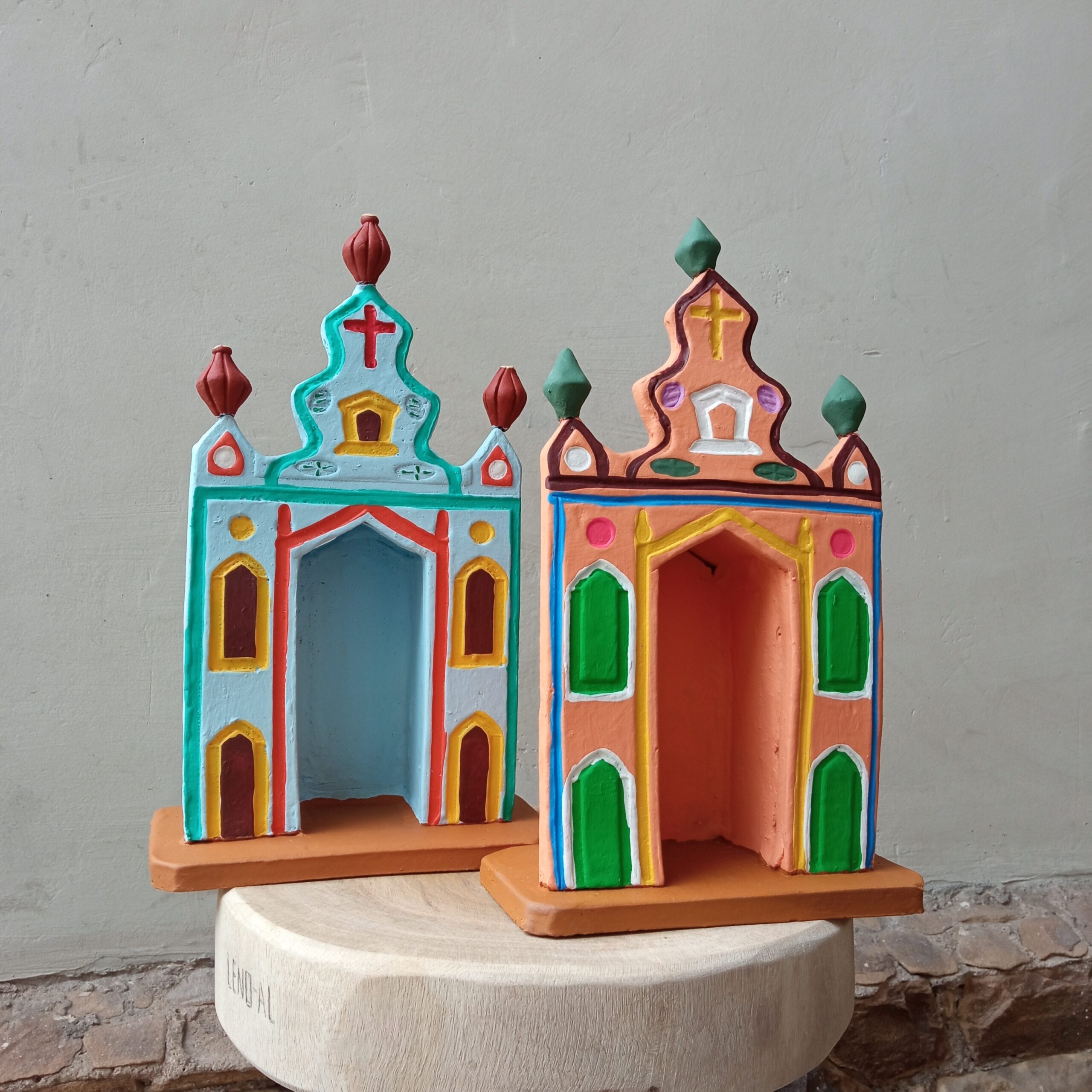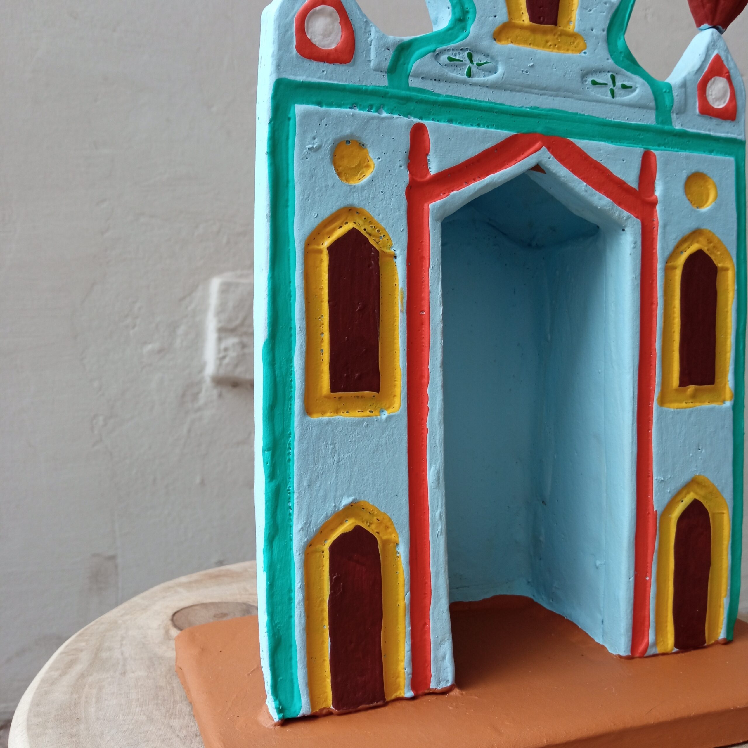 Oratório em cerâmica, moldada e pintada à mão, Caruaru – PE.