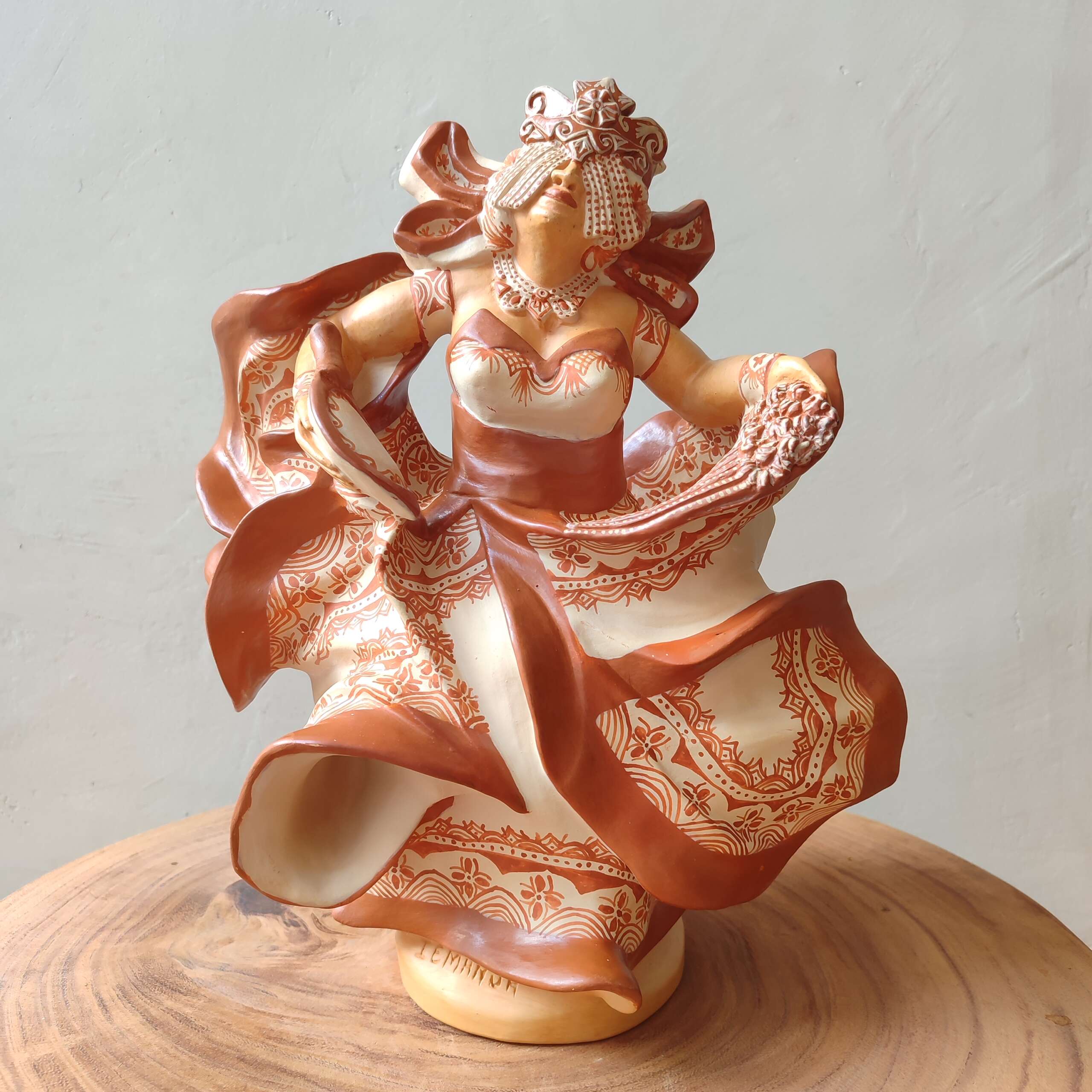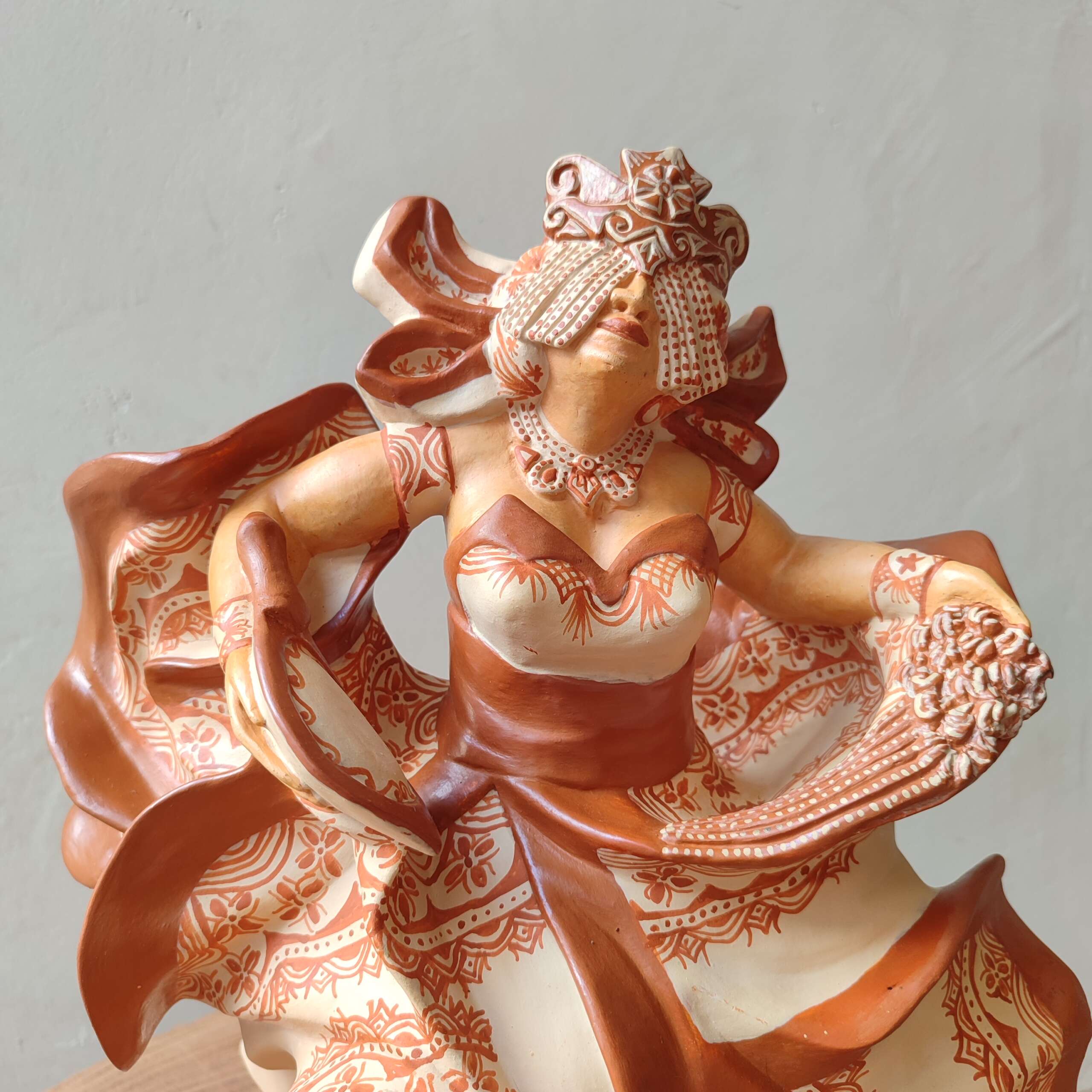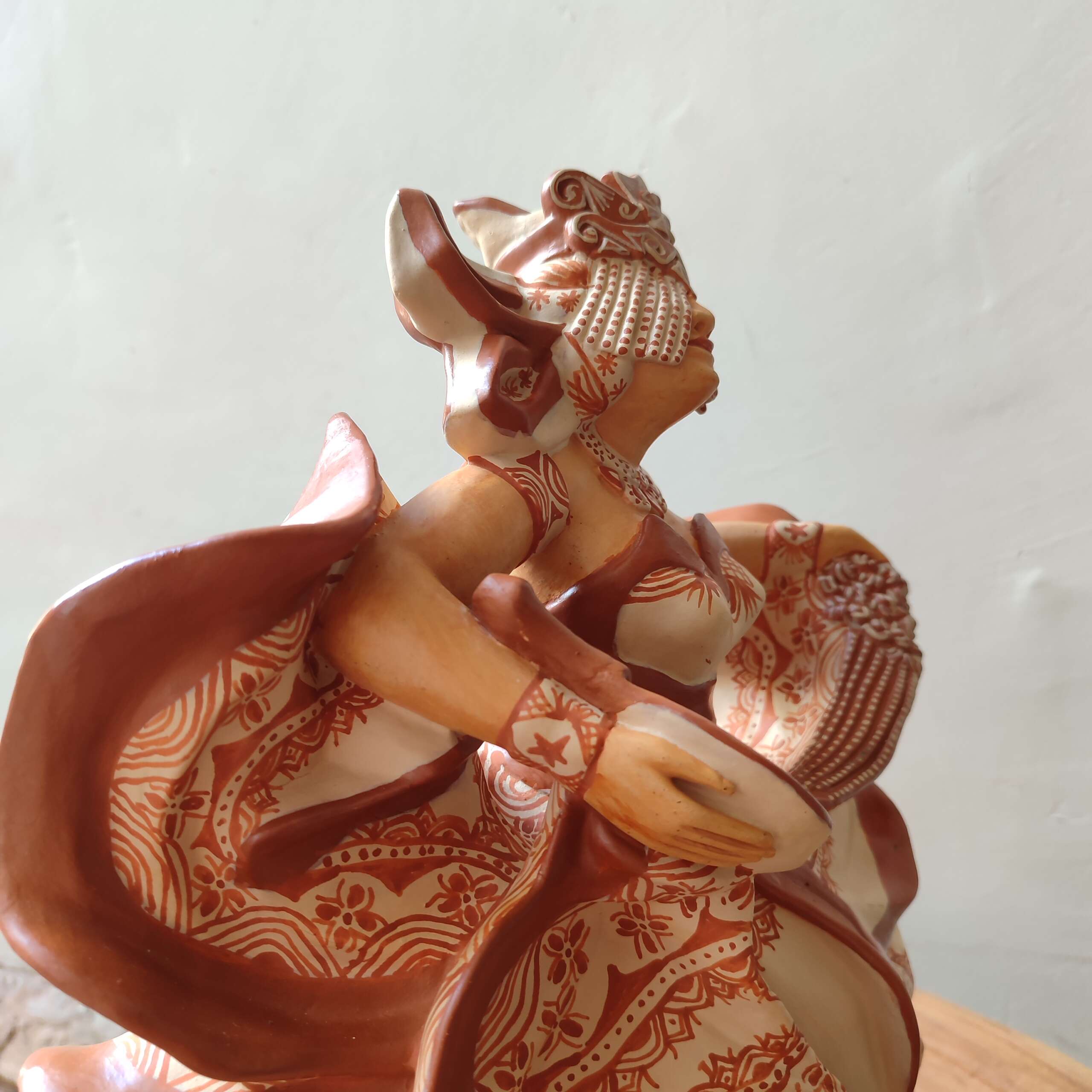 Escultura decorativa de cerâmica, com pintura do próprio barro misturado de dois rios diferentes. Orixá Iemanjá. Confeccionada pelo artesão Elson – Barra – BA.