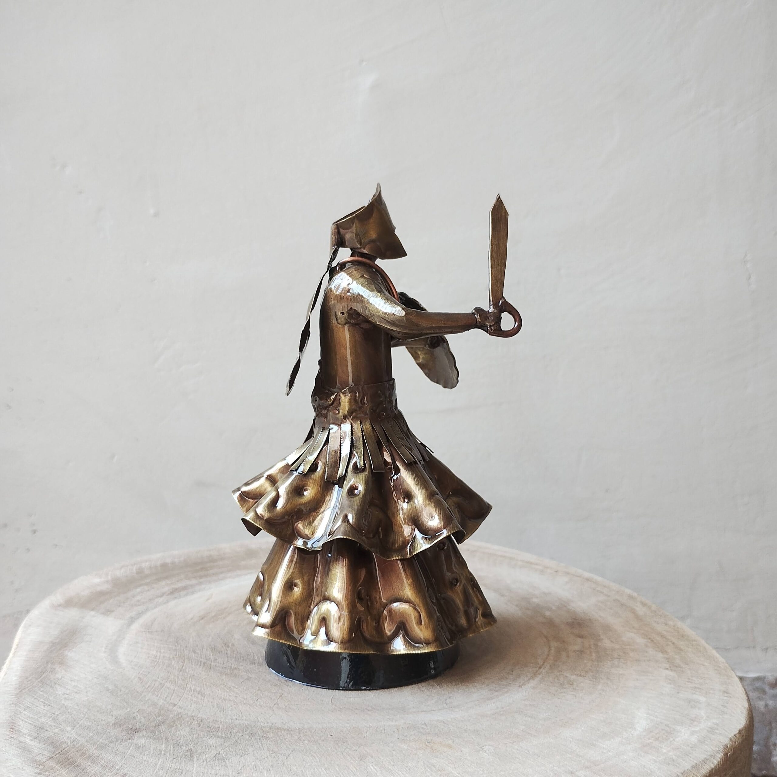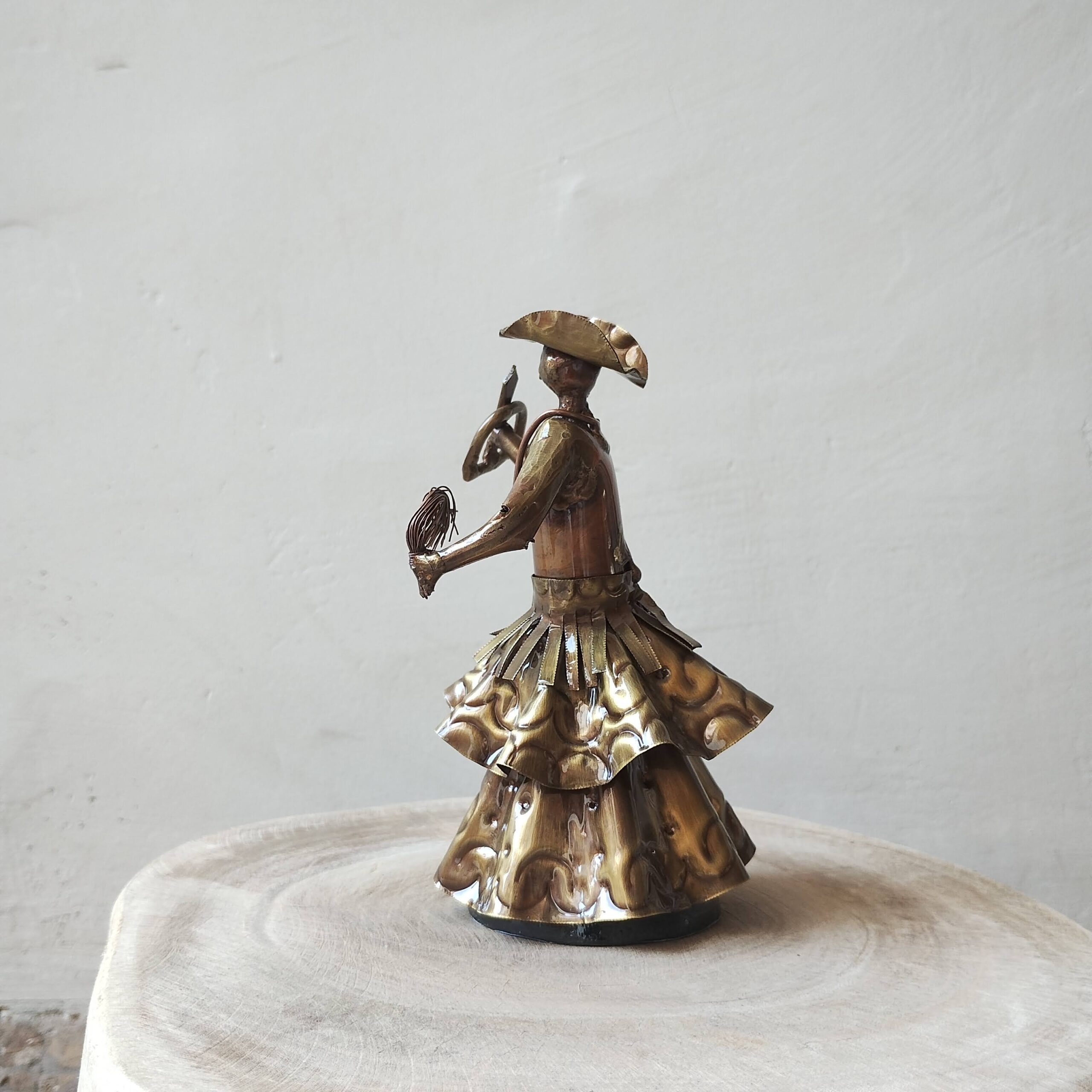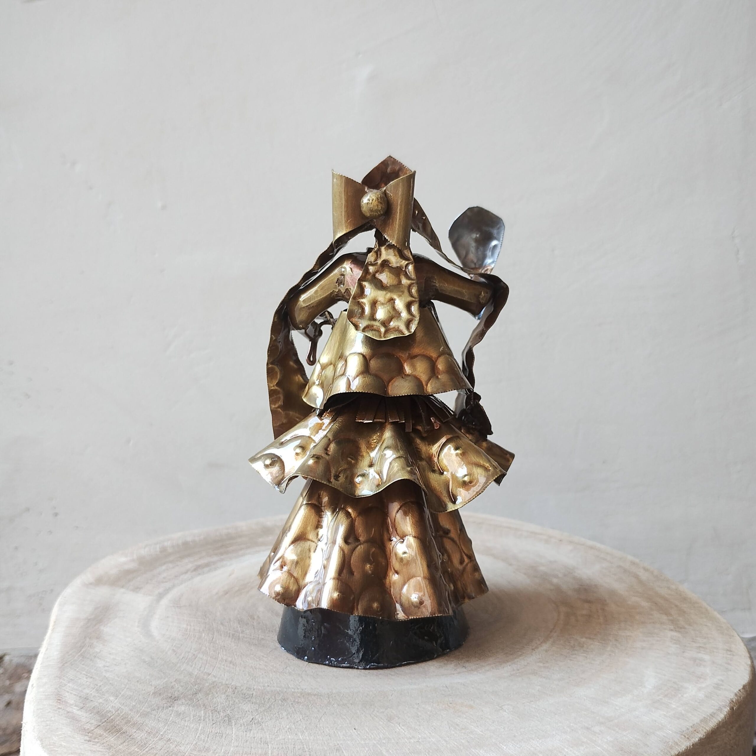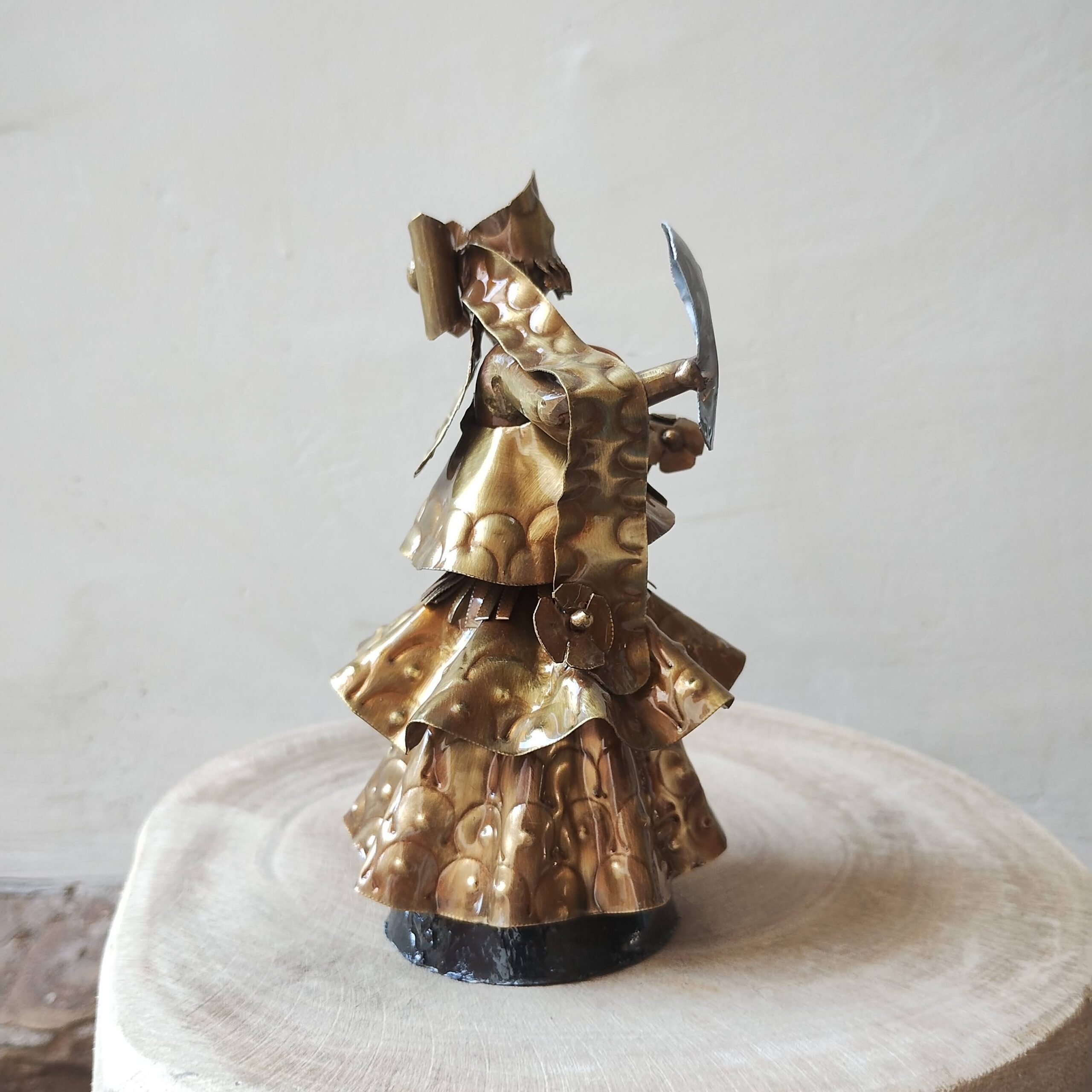 A confecção de orixás em latão é muito tradicional na Bahia, bem como a confecção de paramentas e outros itens vinculados às religiões de matriz africana nesse mesmo material. Confeccionada pela artesã Mônica – BA.