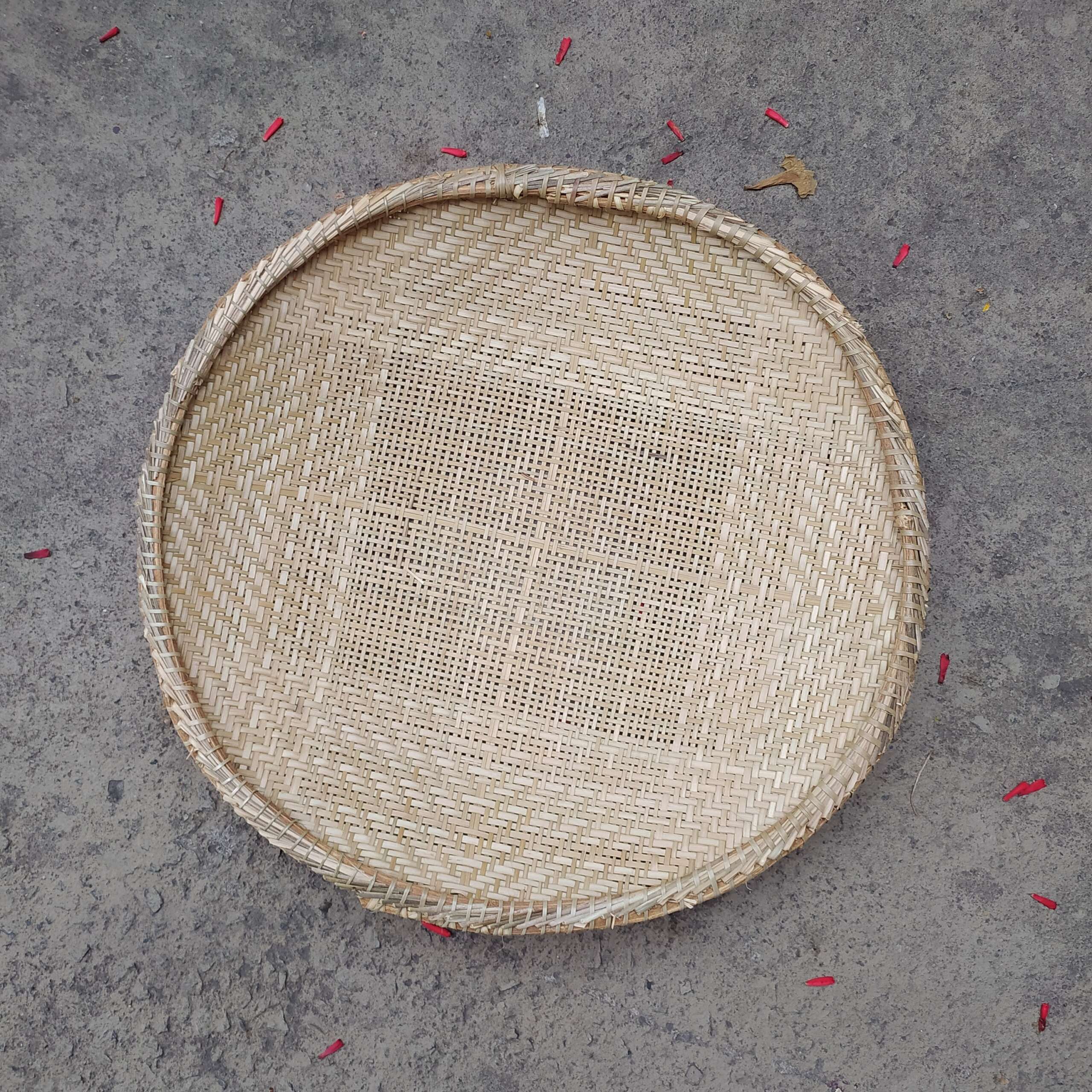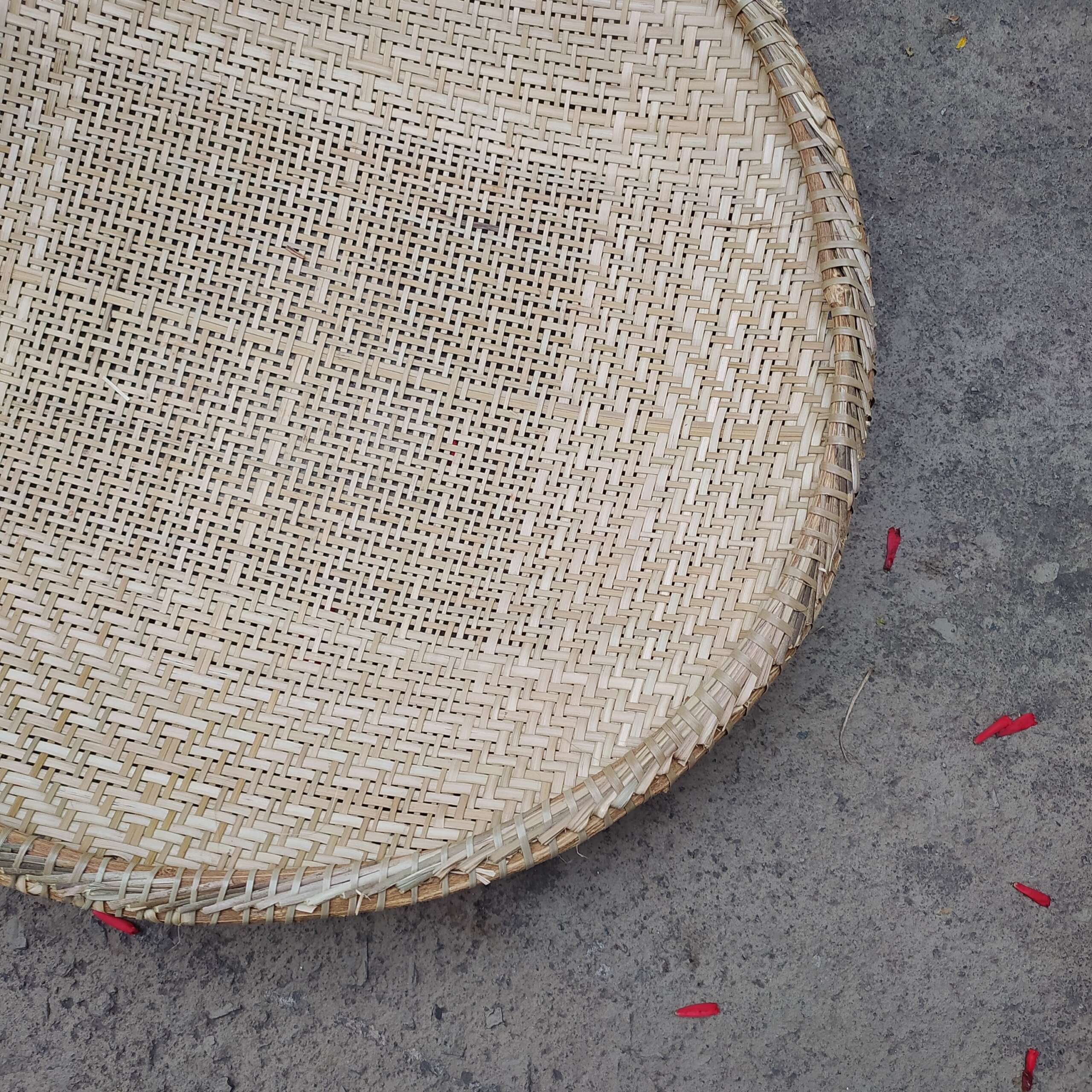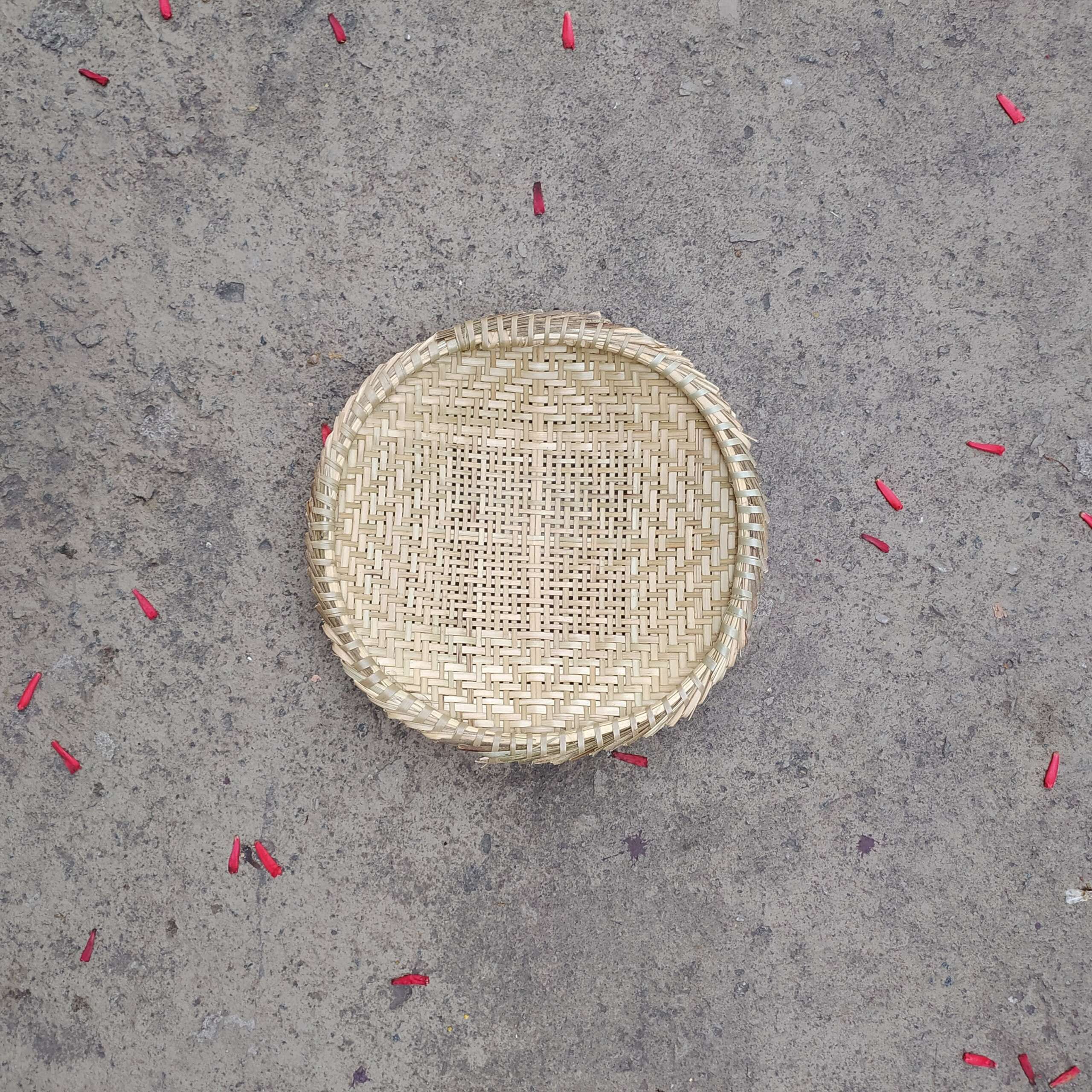 Peneira em fibra de taquara, cor natural, trançada manualmente por artesãs de Sergipe.