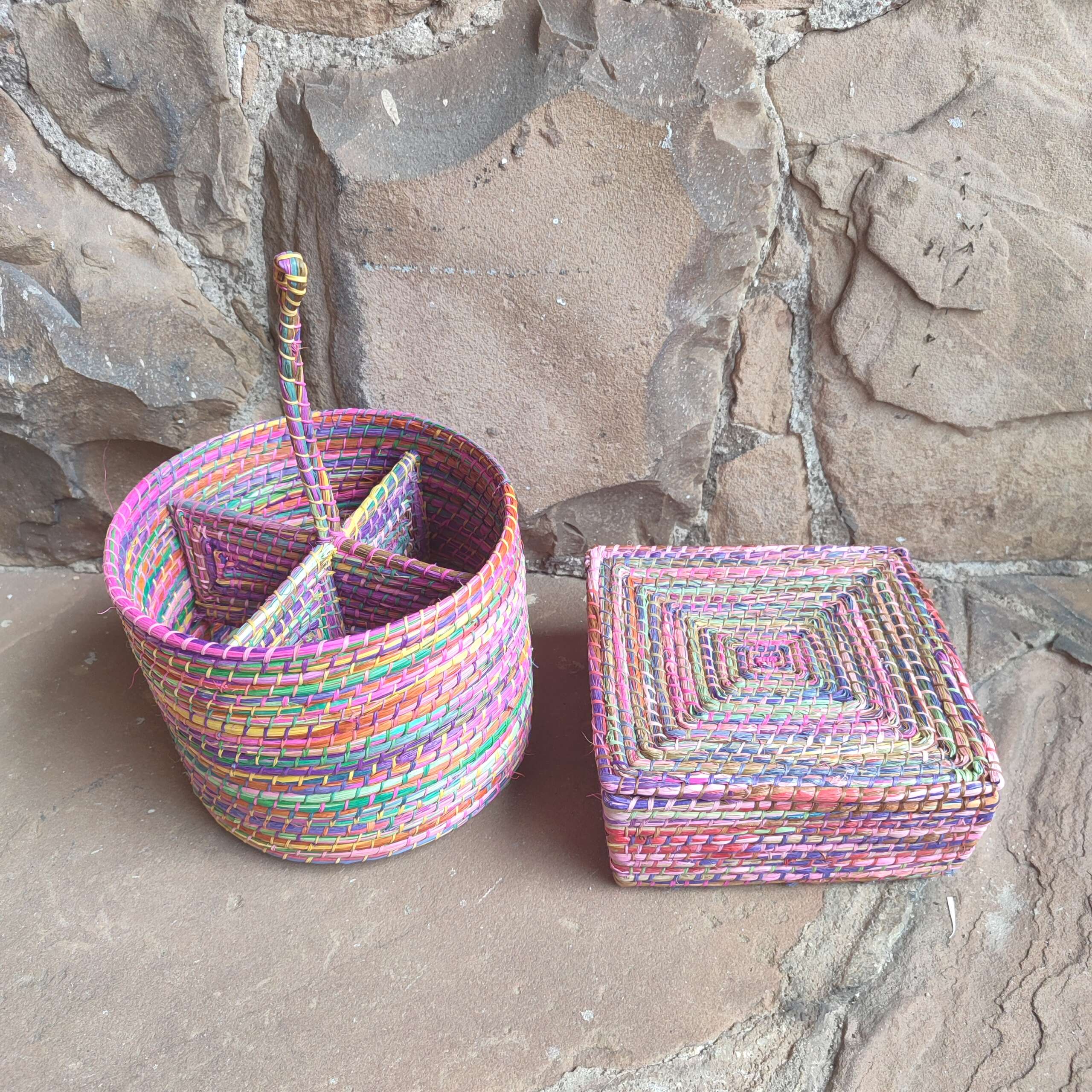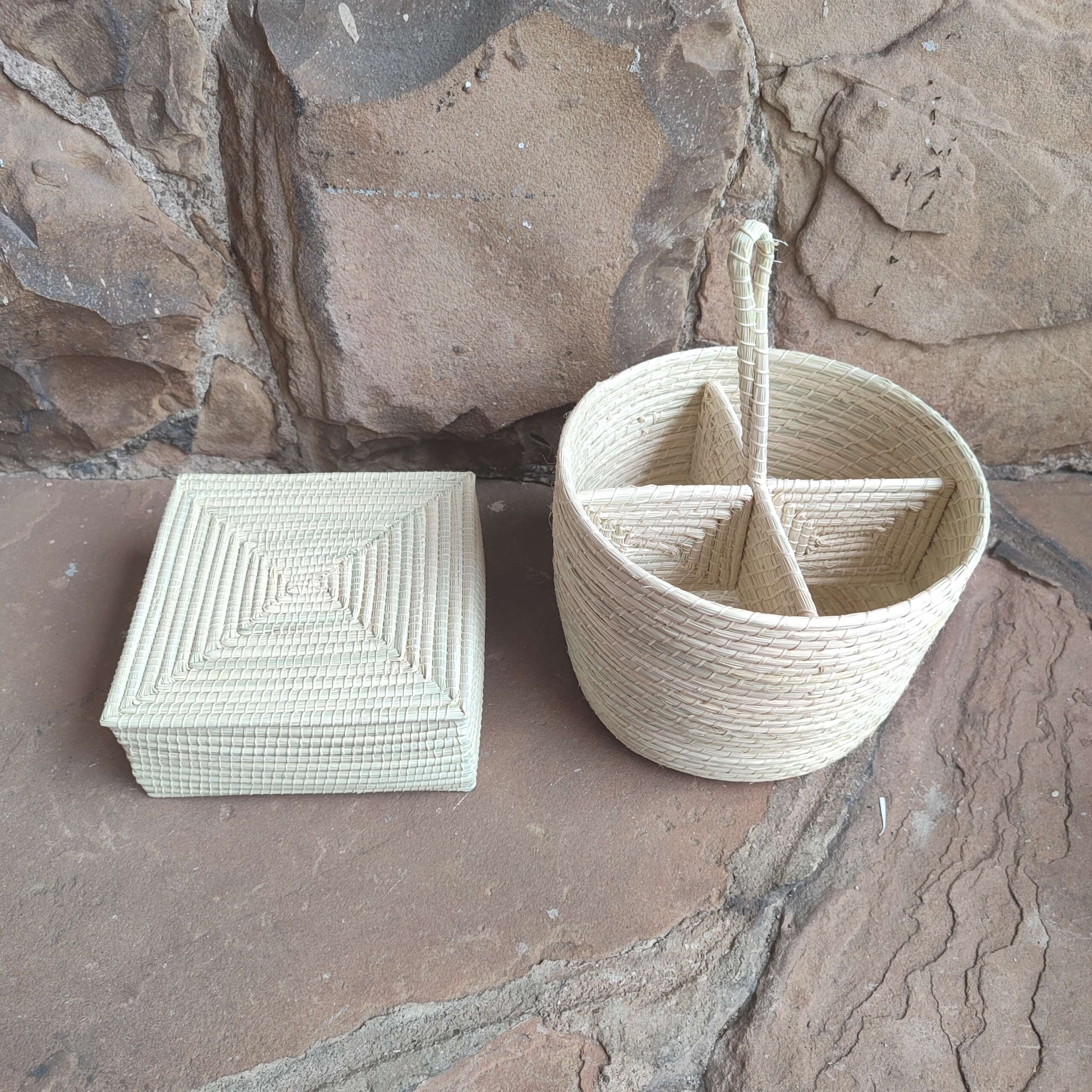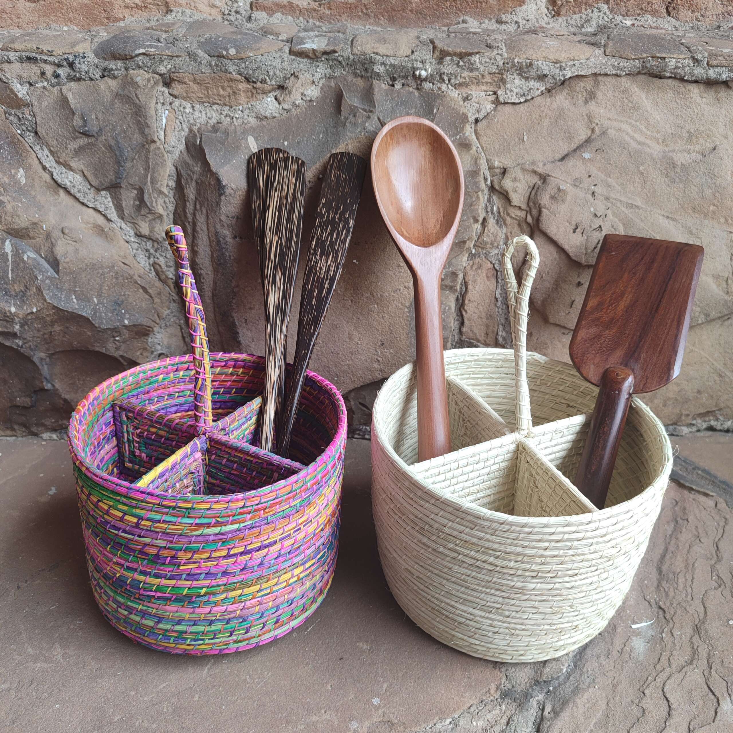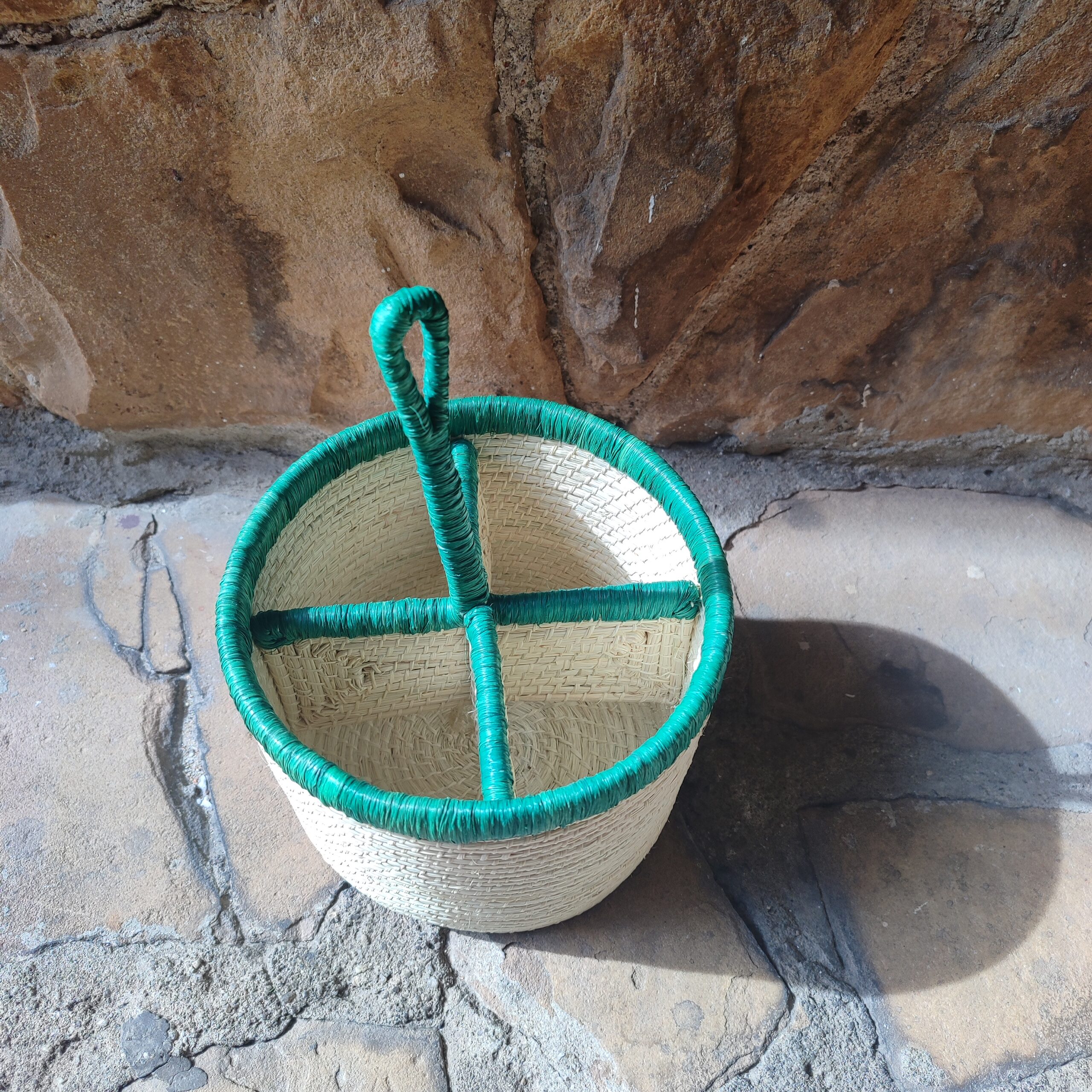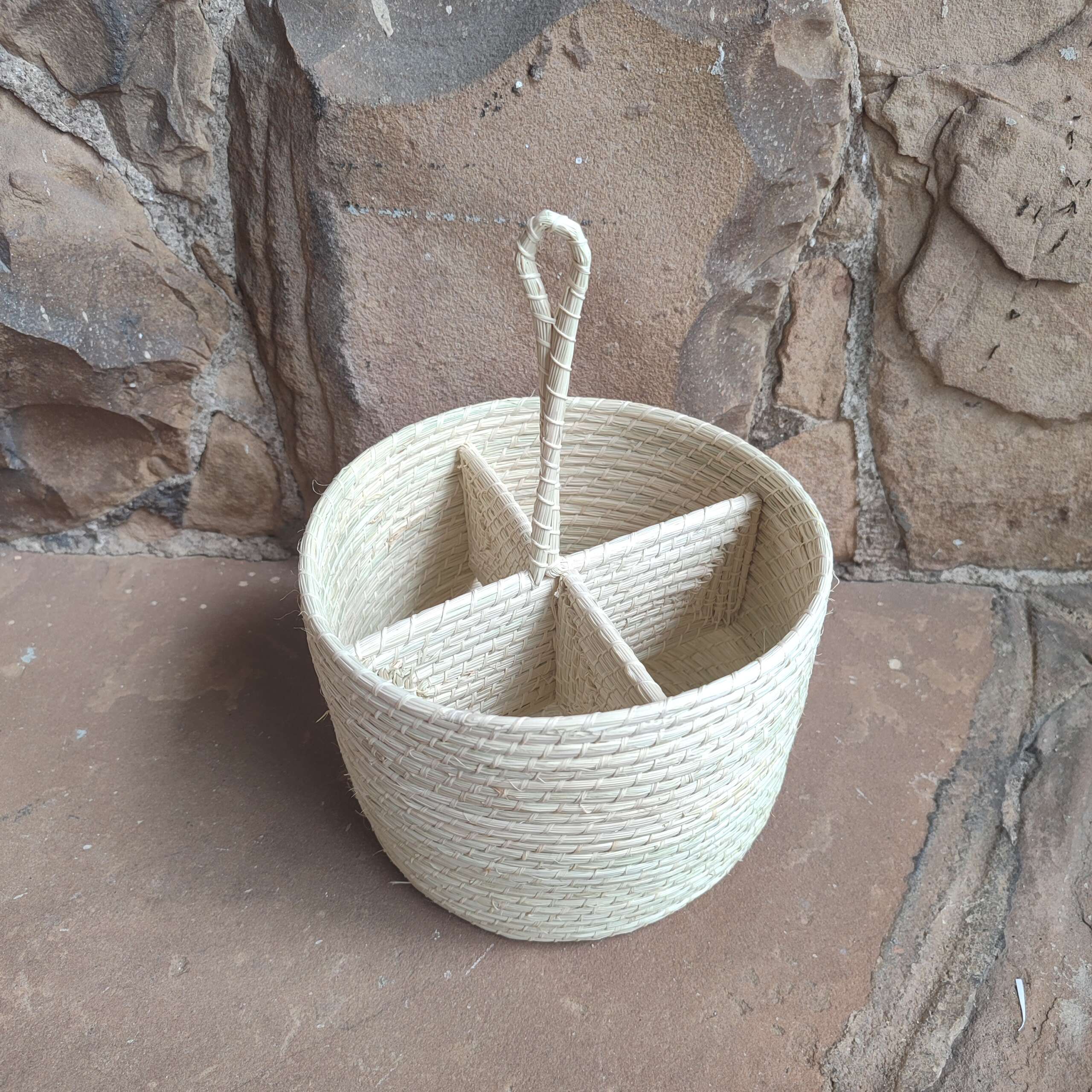 Porta talher em palha de ouricuri, com 4 divisórias.