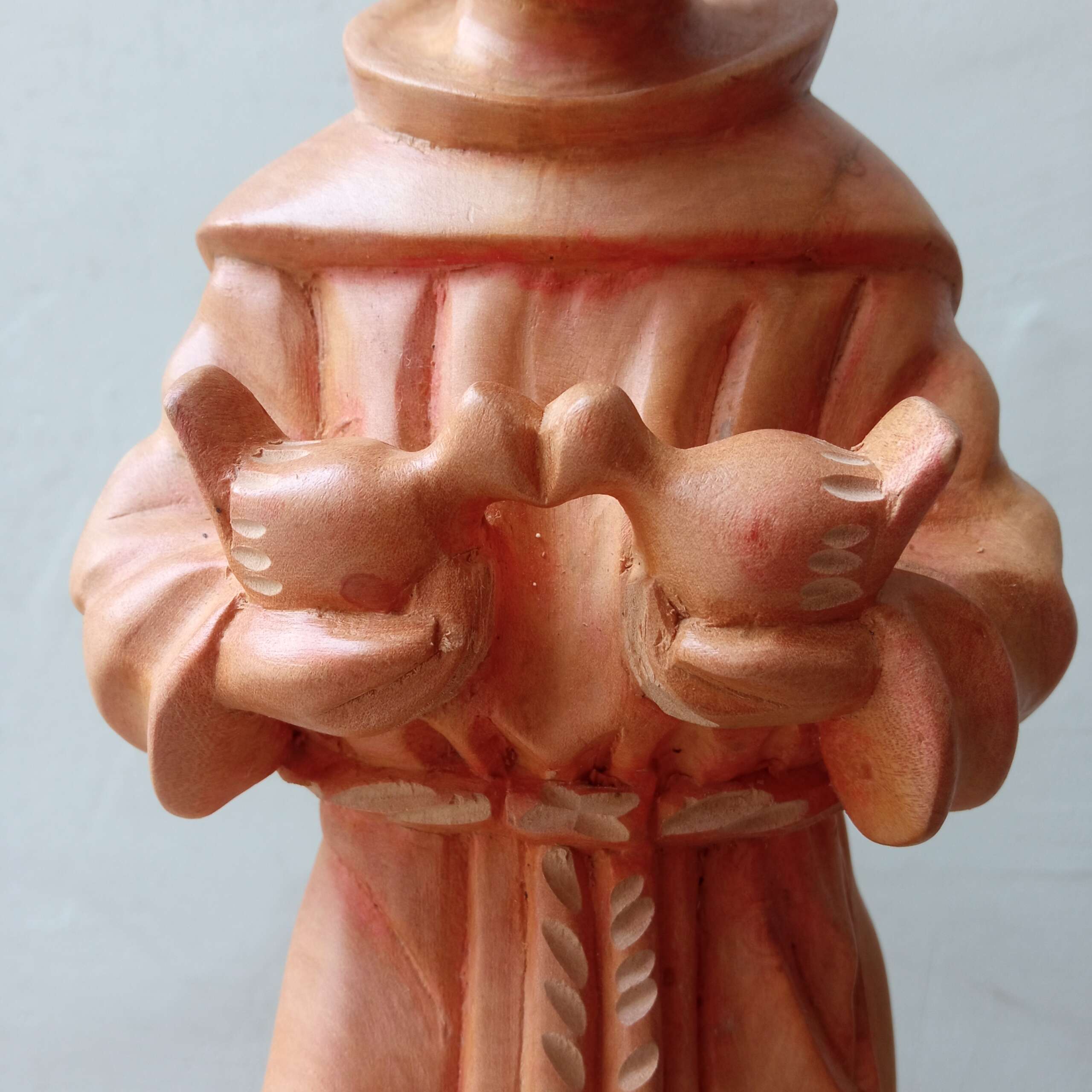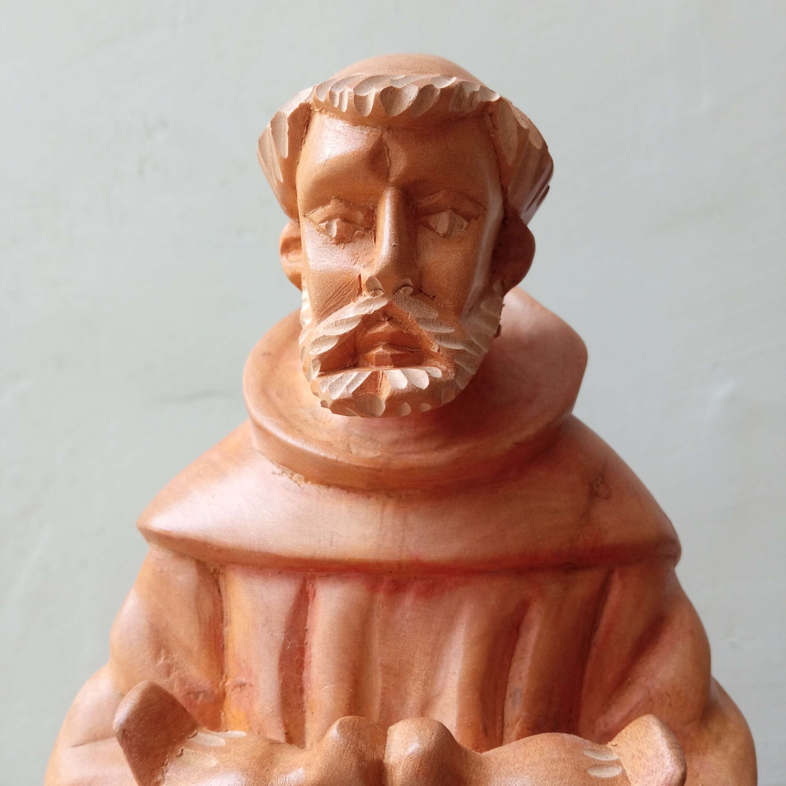 Entalhe da imagem de São Francisco, pintada, entalhado em madeira umburana, do artista Dunga de Juazeiro do Norte.