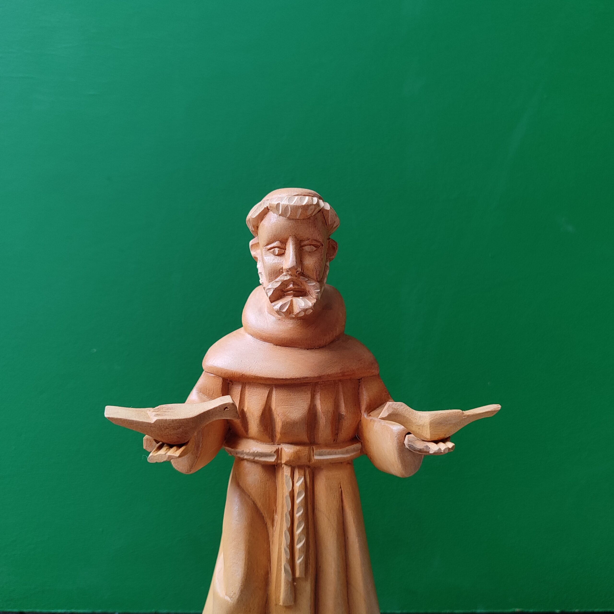 Entalhe da imagem de São Francisco, pintada, entalhado em madeira umburana, do artista Dunga de Juazeiro do Norte.