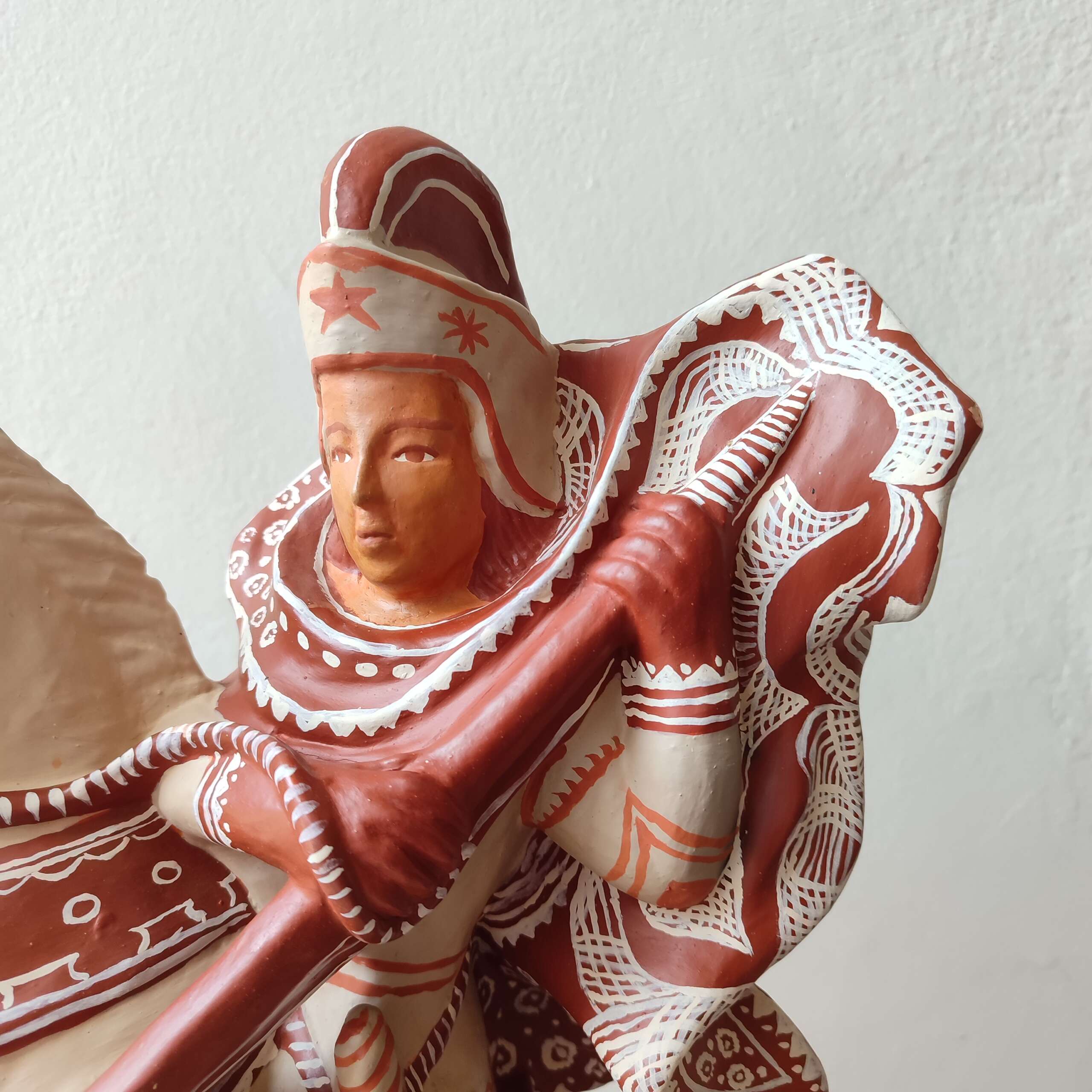 Escultura decorativa de cerâmica, com pintura do próprio barro misturado de dois rios diferentes. São Jorge. Confeccionada pelo artesão Gerar – Barra – BA.