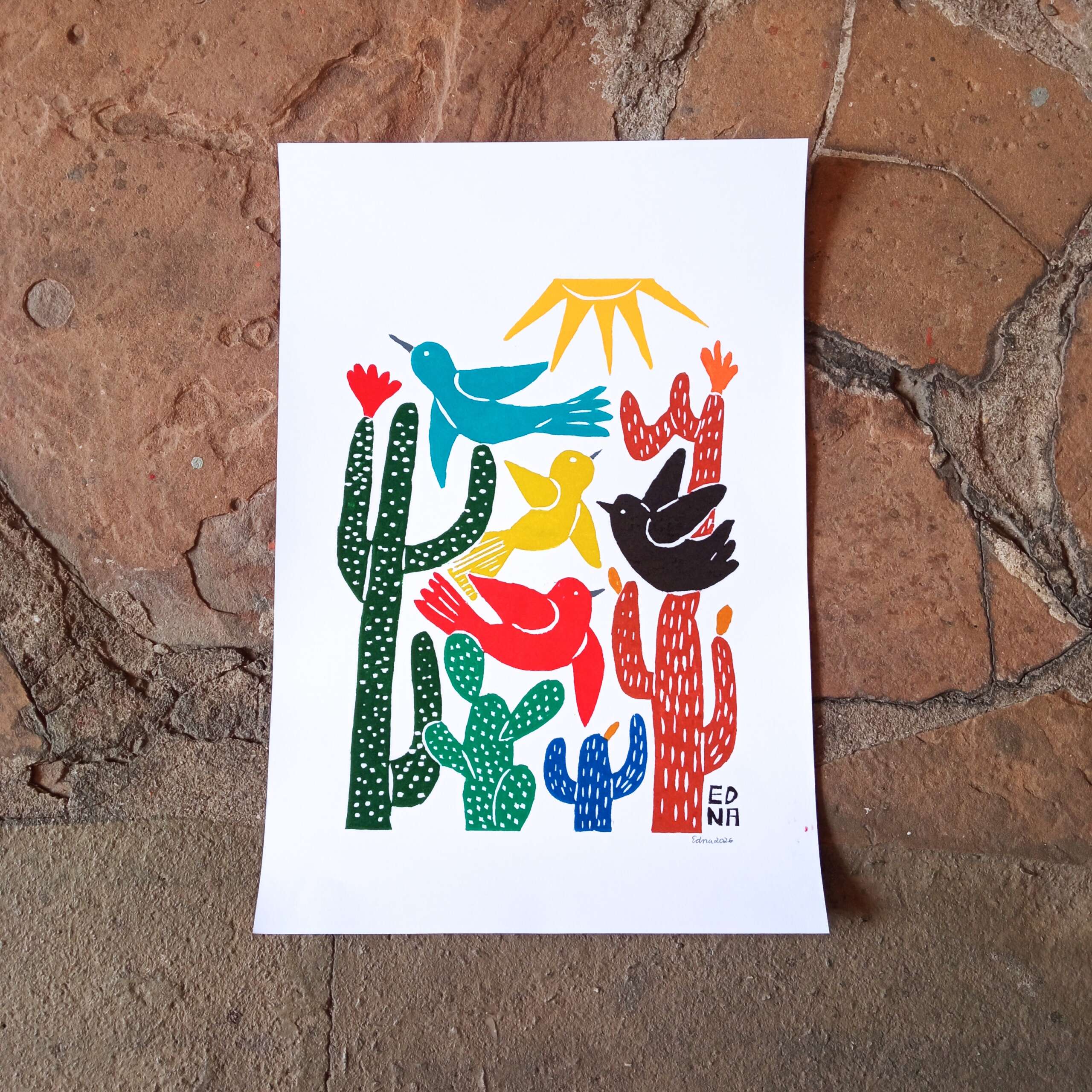 Xilogravura Edna Silva M – Caatinga Colorida