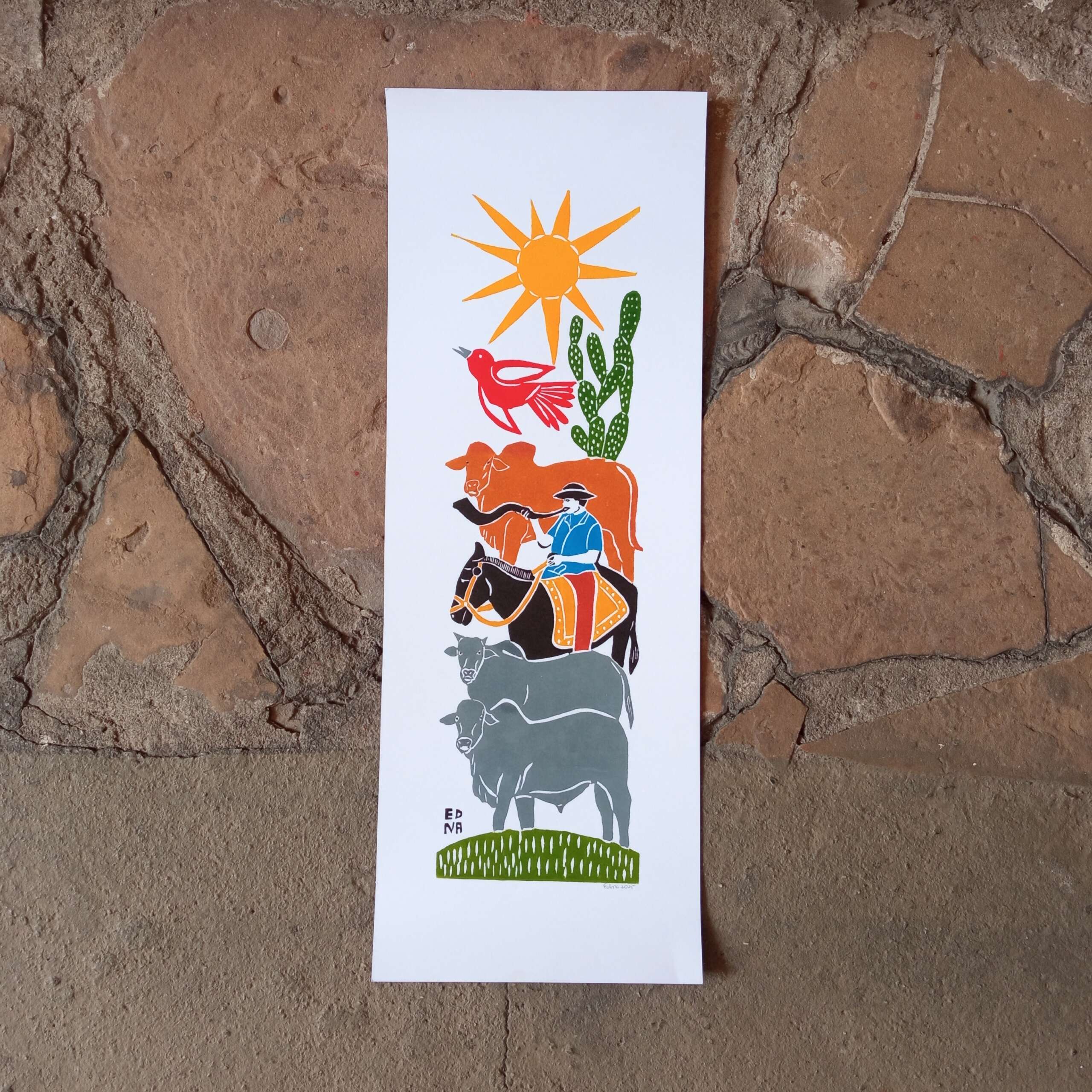 Seja o primeiro a avaliar “Xilogravura Edna Silva M Vertical – Boiadeiros”