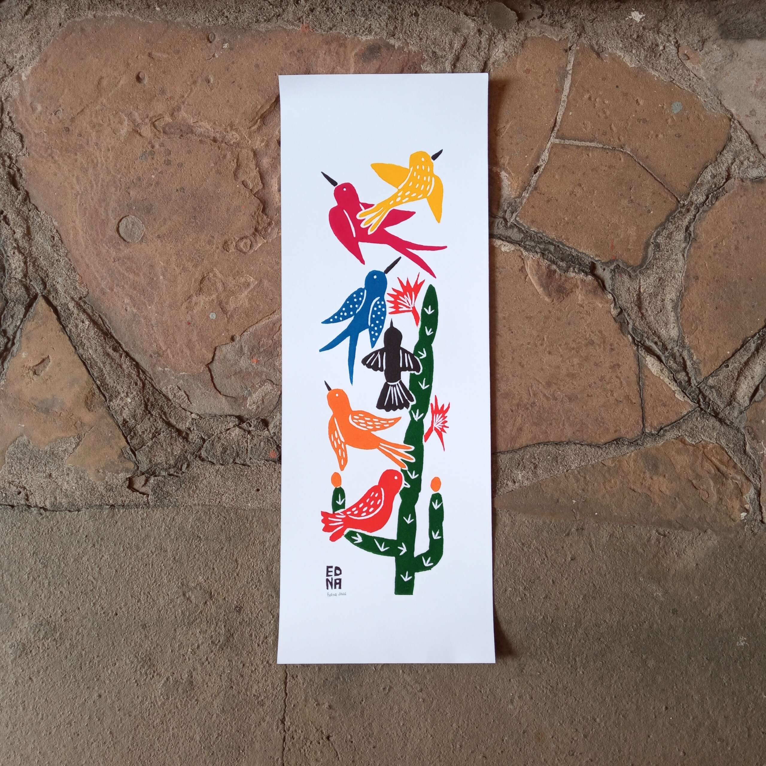 Xilogravura Edna Silva M Vertical – Passarinhada