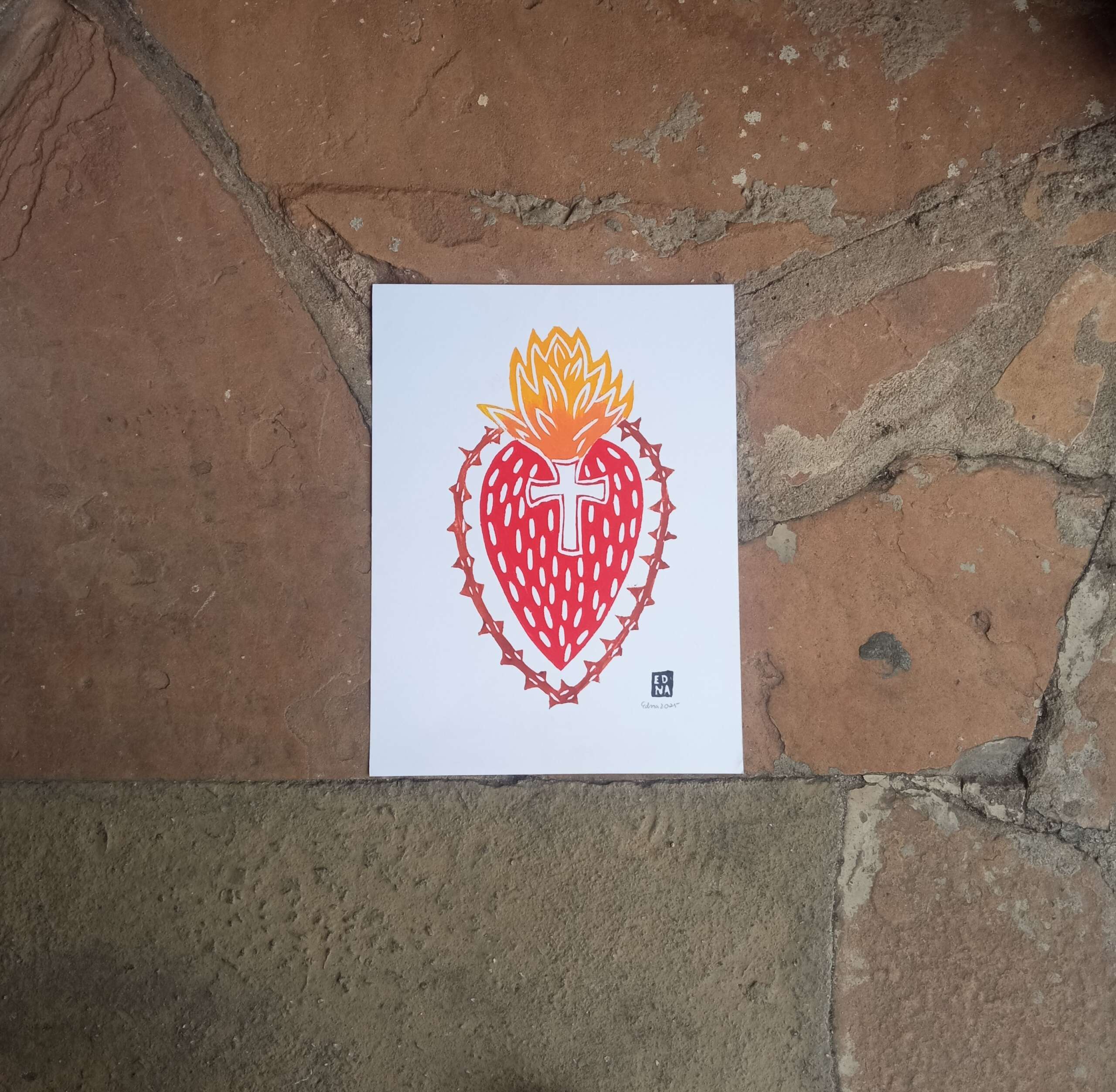 Xilogravura da artista Edna Silva (PE), nora do Mestre J Borges. Edna é uma das responsáveis pela produção e administração do Memorial J. Borges e tem sua própria produção autoral, cuidando de todo o processo de criação da xilogravura, desde o entalhe, a pintura e impressão.